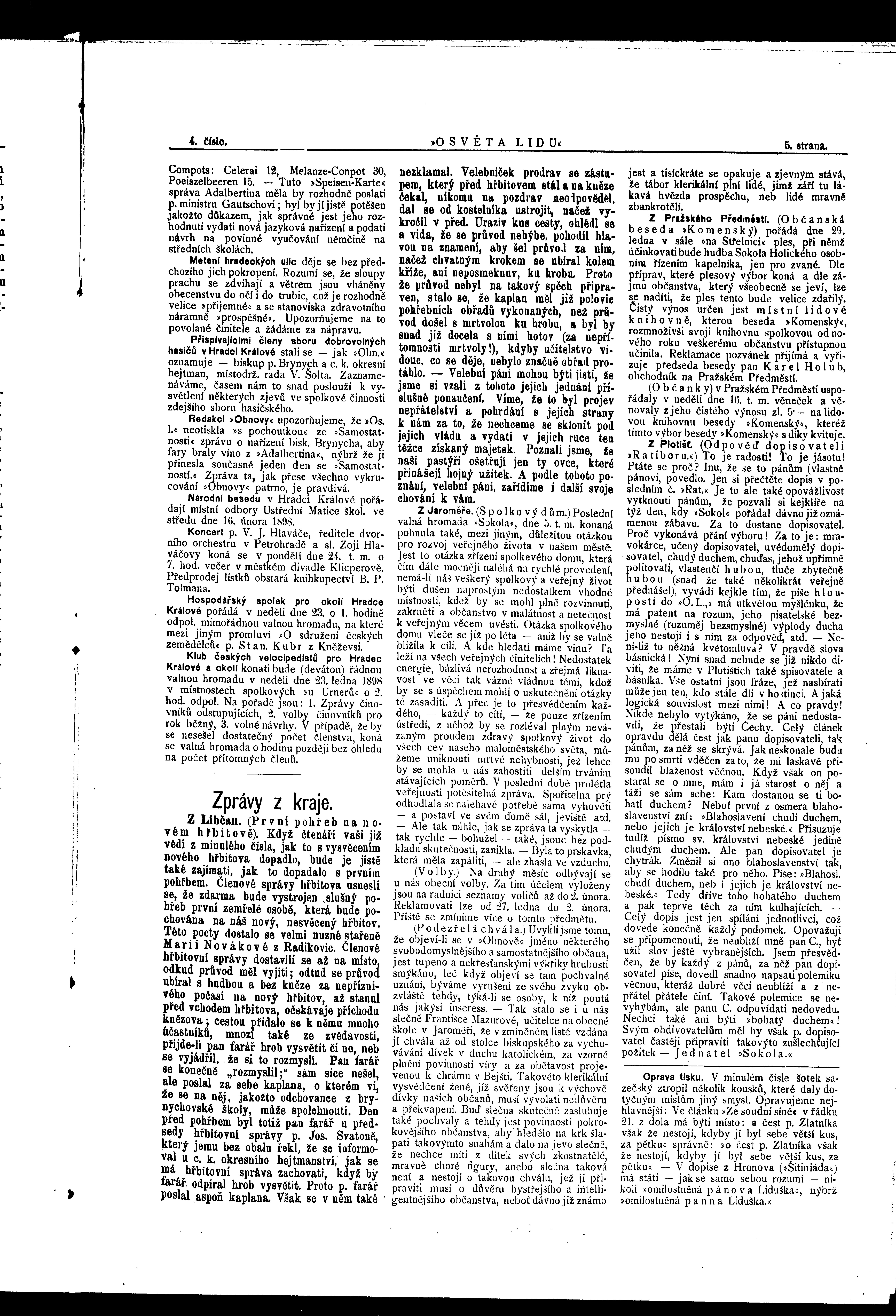 * Datum vydání výtisku: 22.1.1898 Číslo výtisku: 4 Poznámky k výtisku: ranní vydání