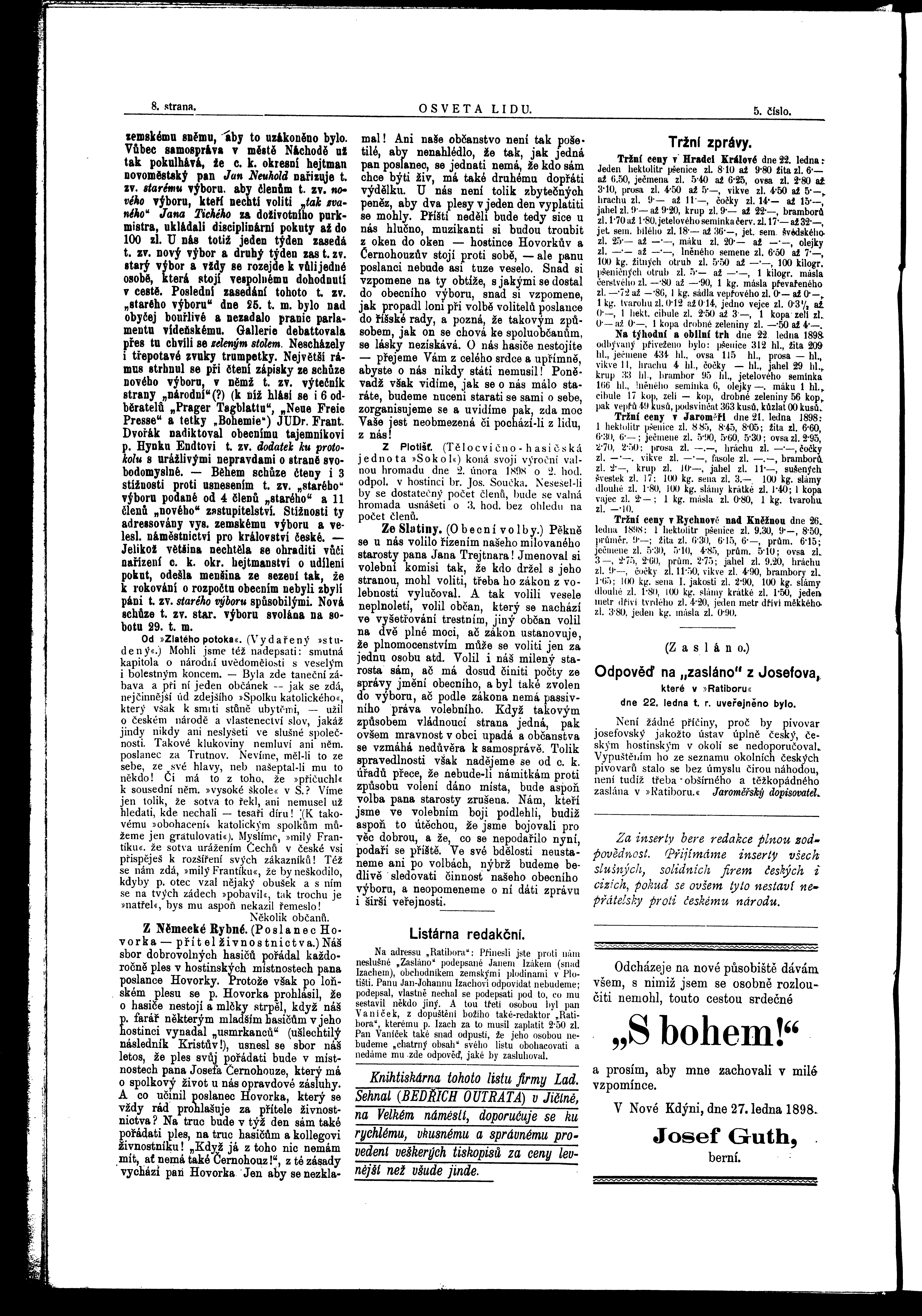 * Datum vydání výtisku: 29.1.1898 Číslo výtisku: 5 Typ výtisku: příloha
