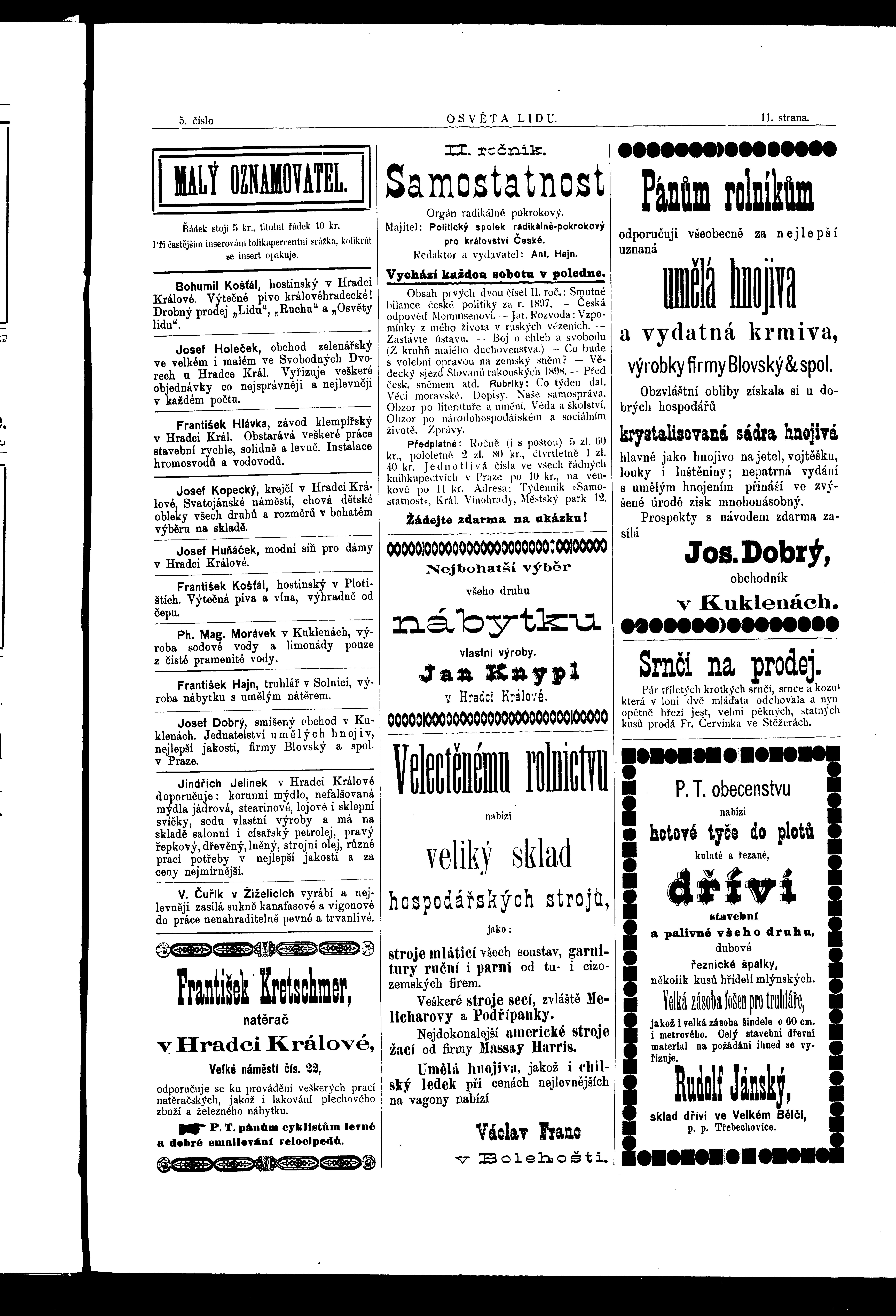 * Datum vydání výtisku: 29.1.1898 Číslo výtisku: 5 Typ výtisku: příloha