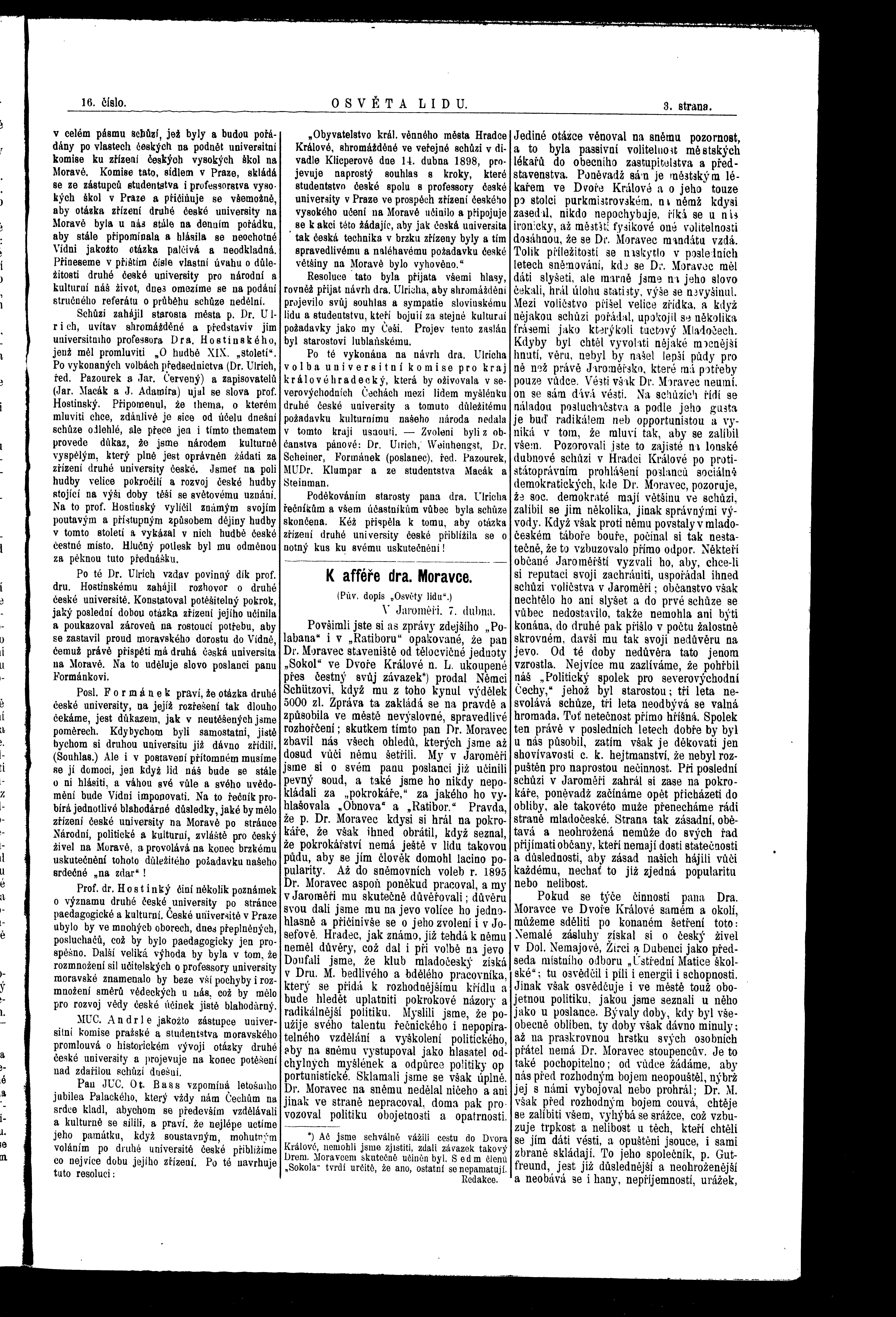 * Datum vydání výtisku: 20.4.1898 Číslo výtisku: 16 Poznámky k výtisku: ranní vydání