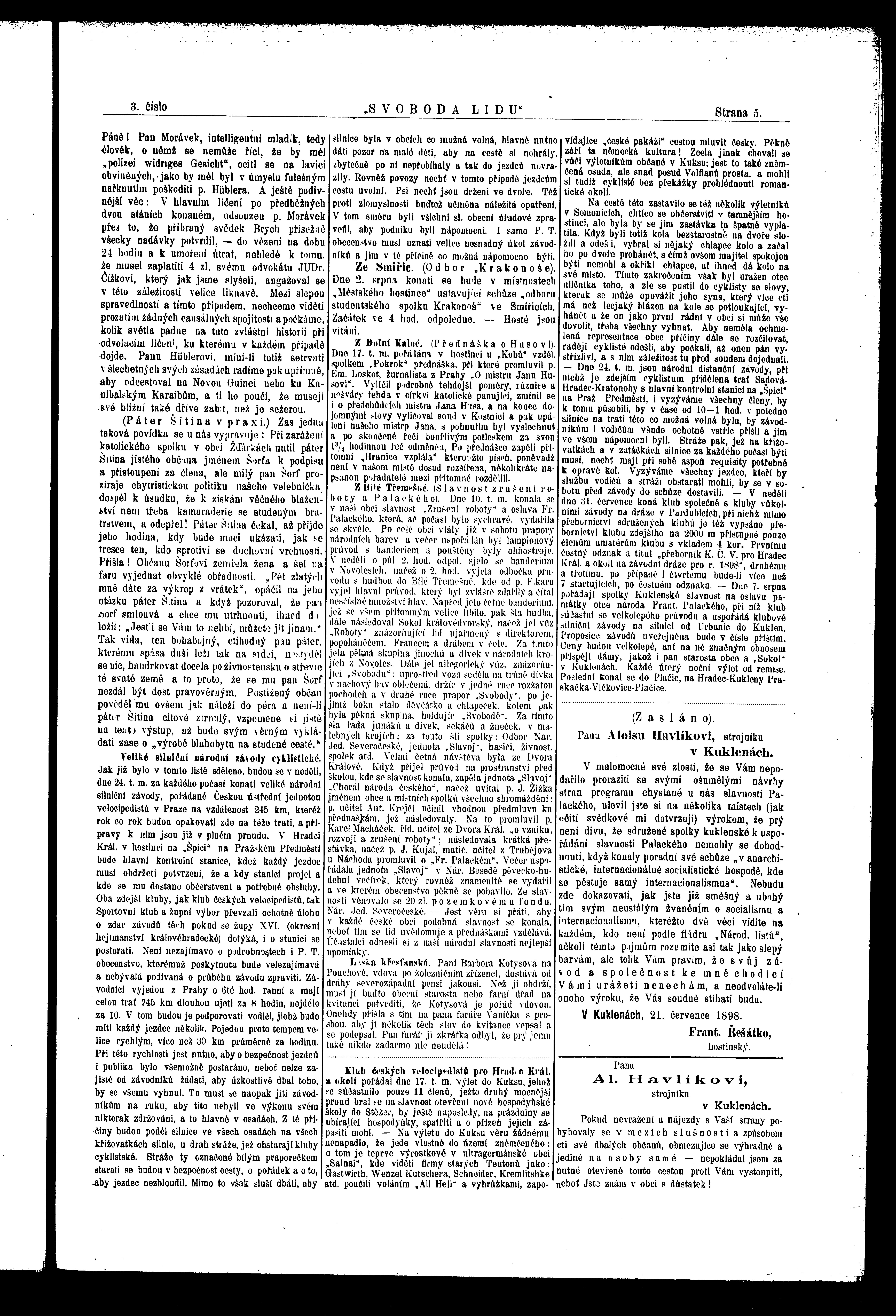 * Datum vydání výtisku: 23.7.1898 Číslo výtisku: 3 Poznámky k výtisku: ranní vydání