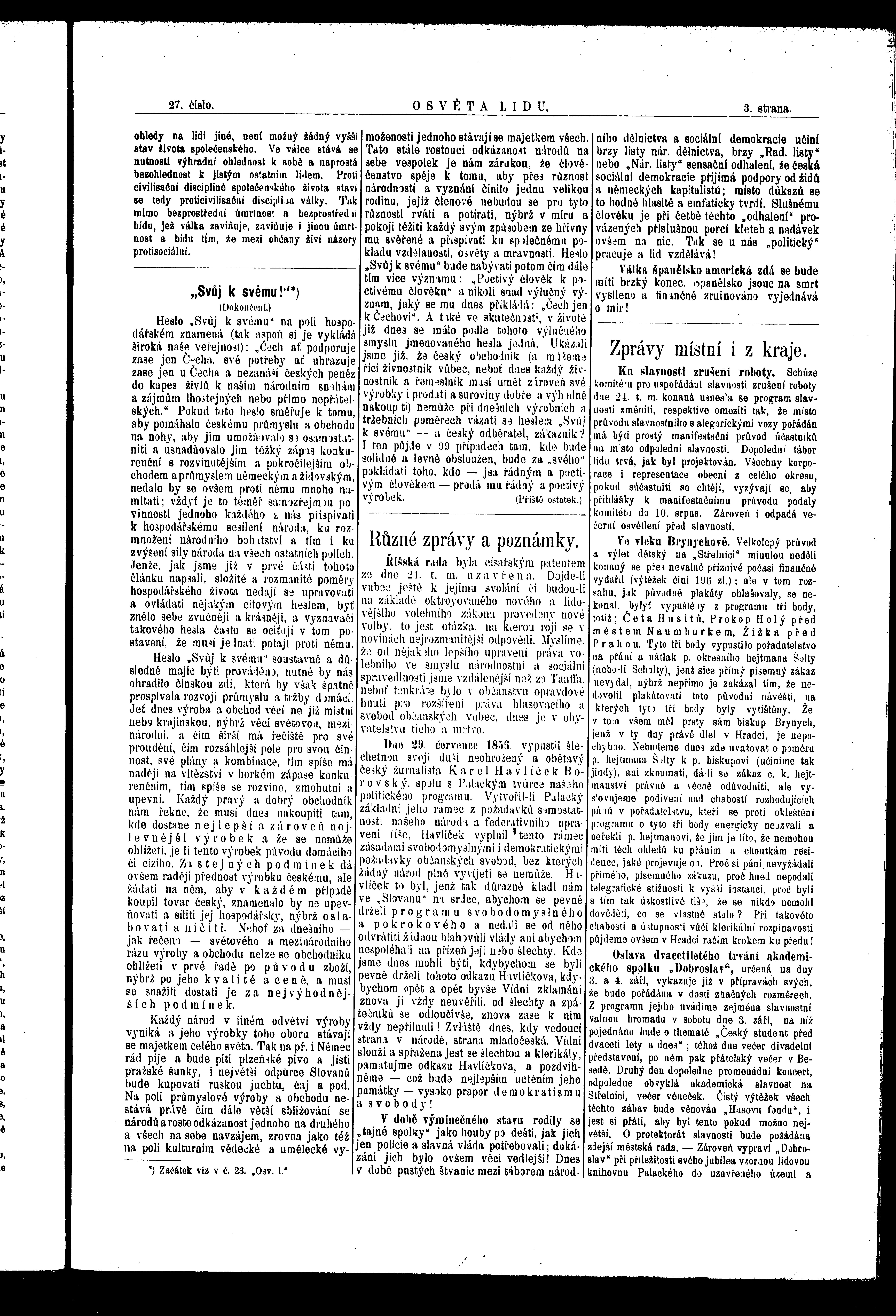 * Datum vydání výtisku: 30.7.1898 Číslo výtisku: 27 Poznámky k výtisku: ranní vydání