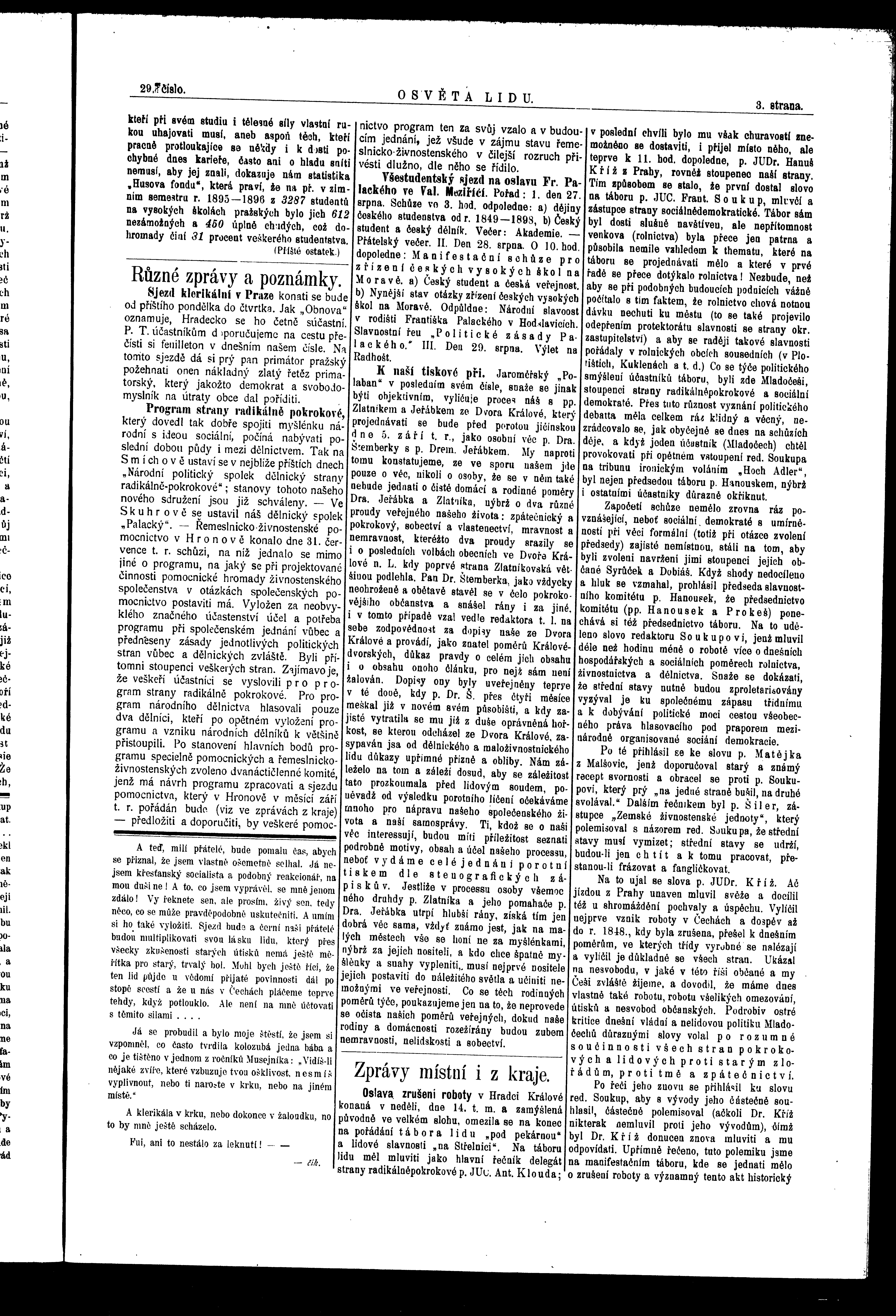 * Datum vydání výtisku: 20.8.1898 Číslo výtisku: 29 Poznámky k výtisku: ranní vydání