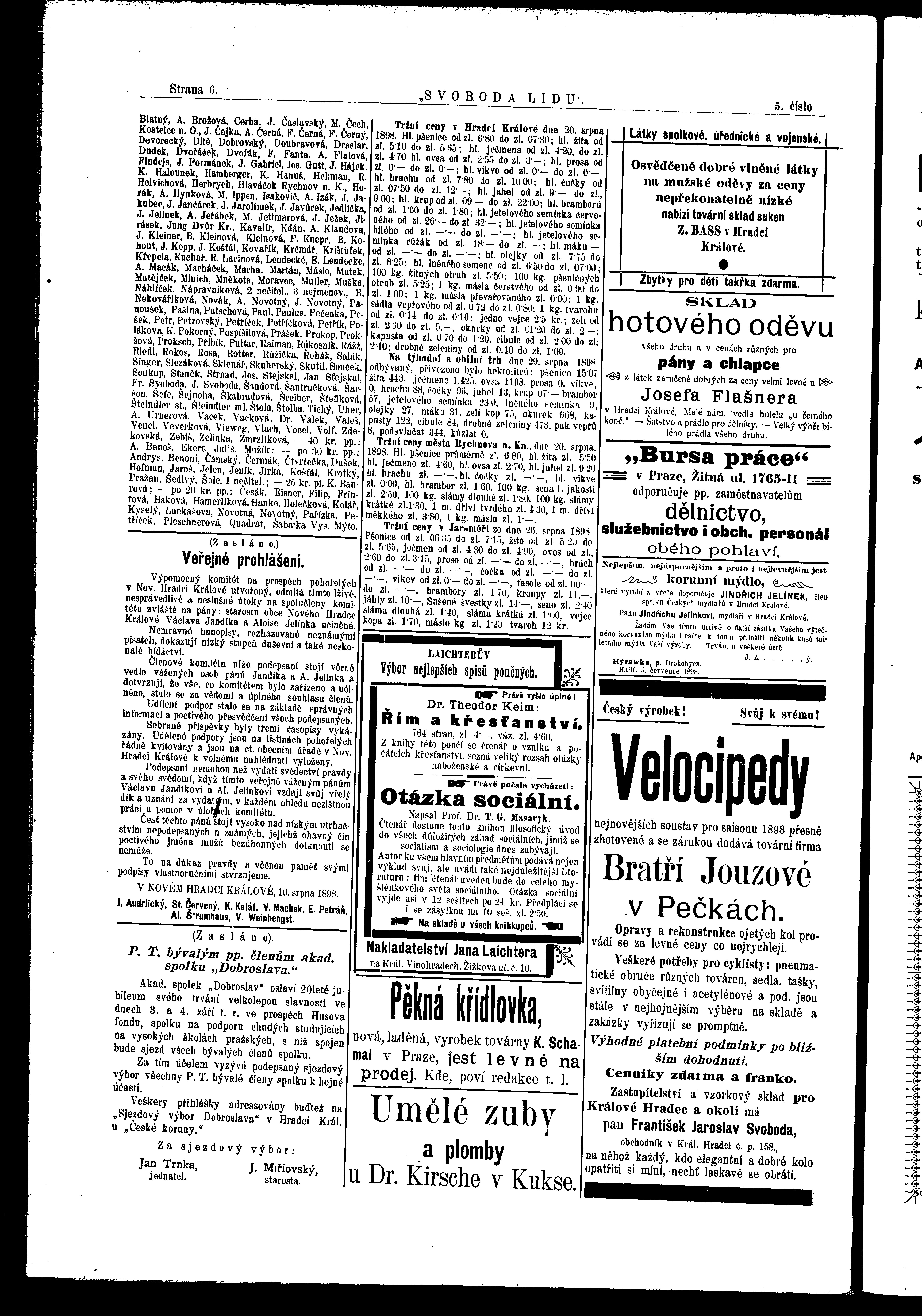 * Datum vydání výtisku: 27.8.1898 Číslo výtisku: 5 Poznámky k výtisku: ranní vydání