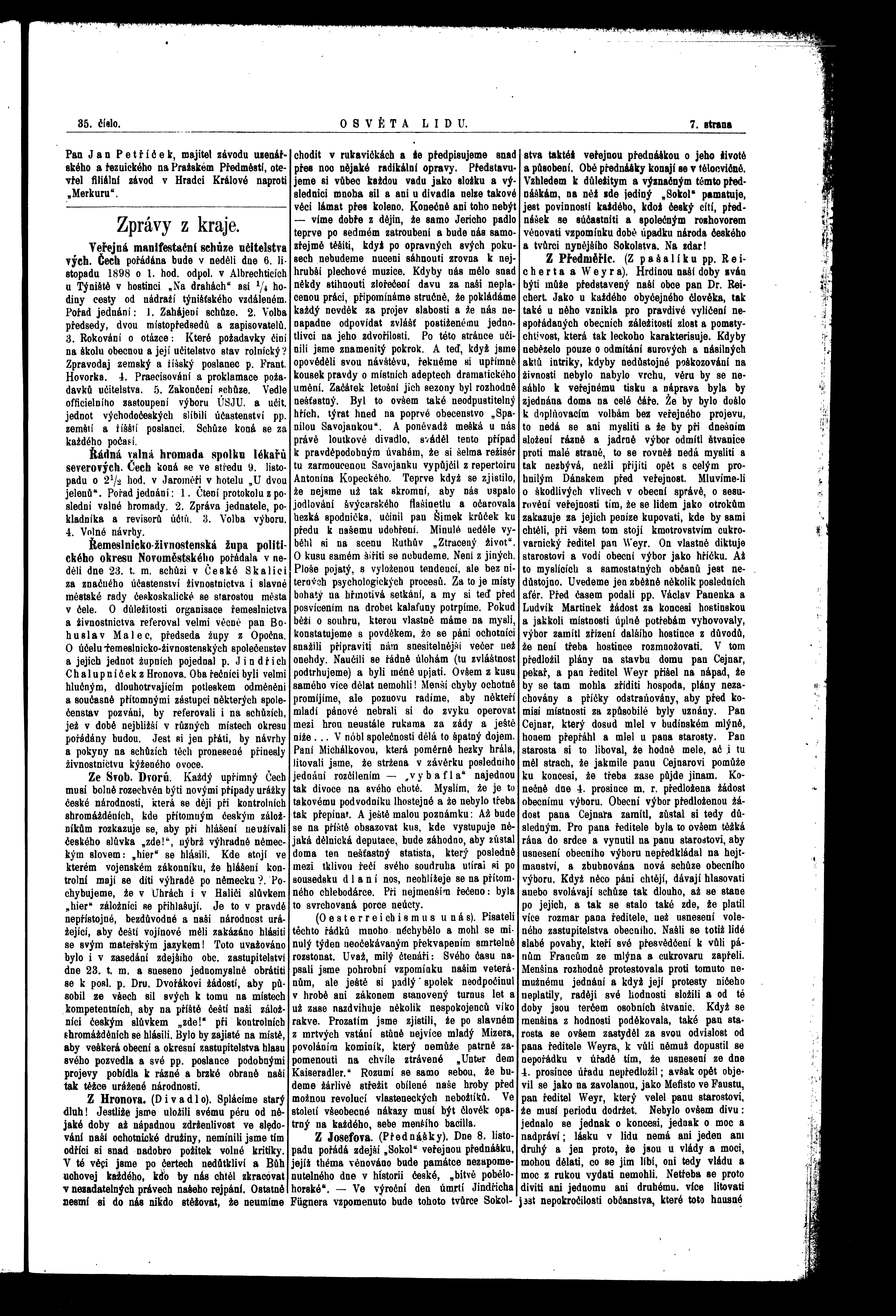 * Datum vydání výtisku: 5.11.1898 Číslo výtisku: 35 Poznámky k výtisku: ranní vydání