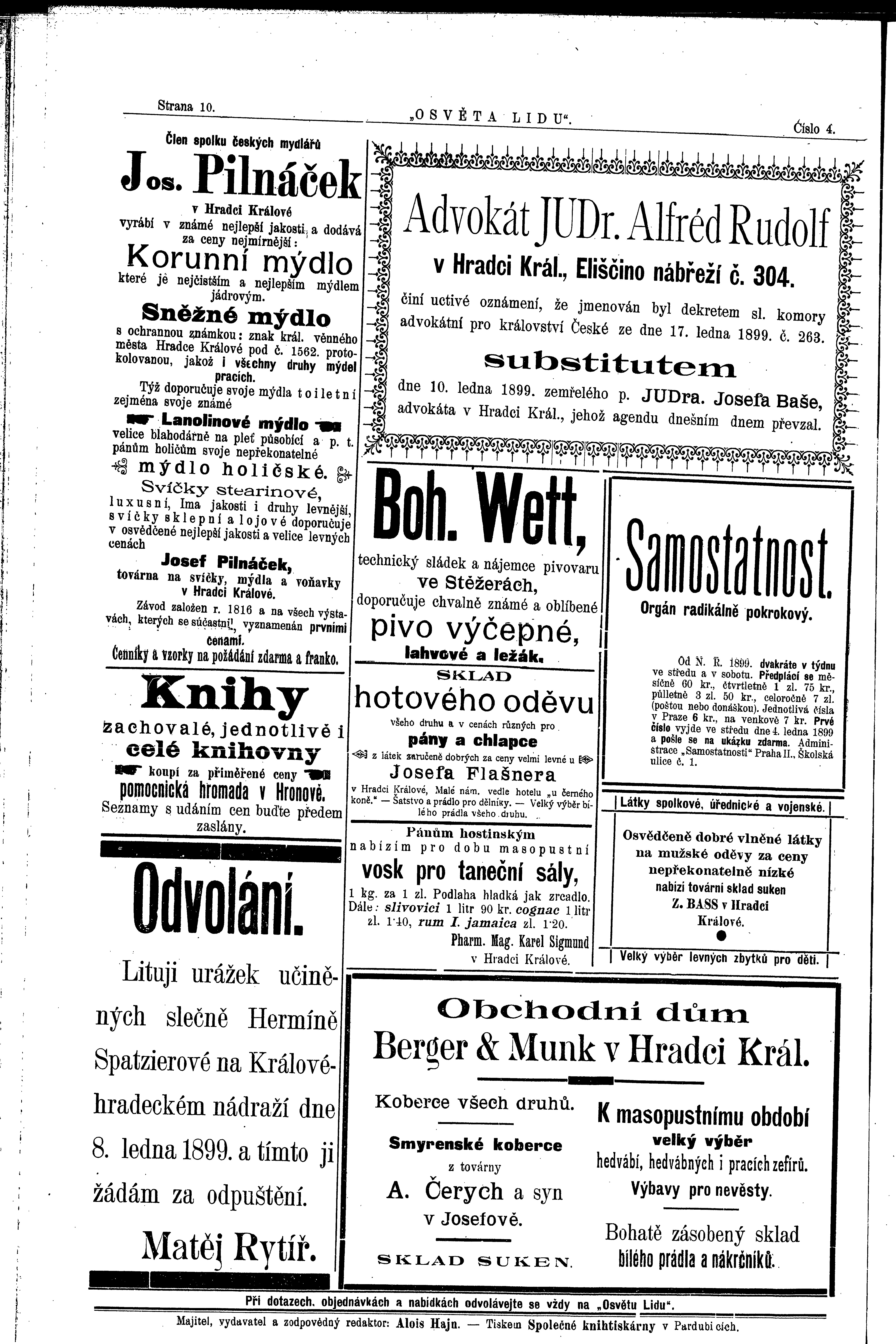 * Datum vydání ročníku: 1899 Číslo ročníku: 4