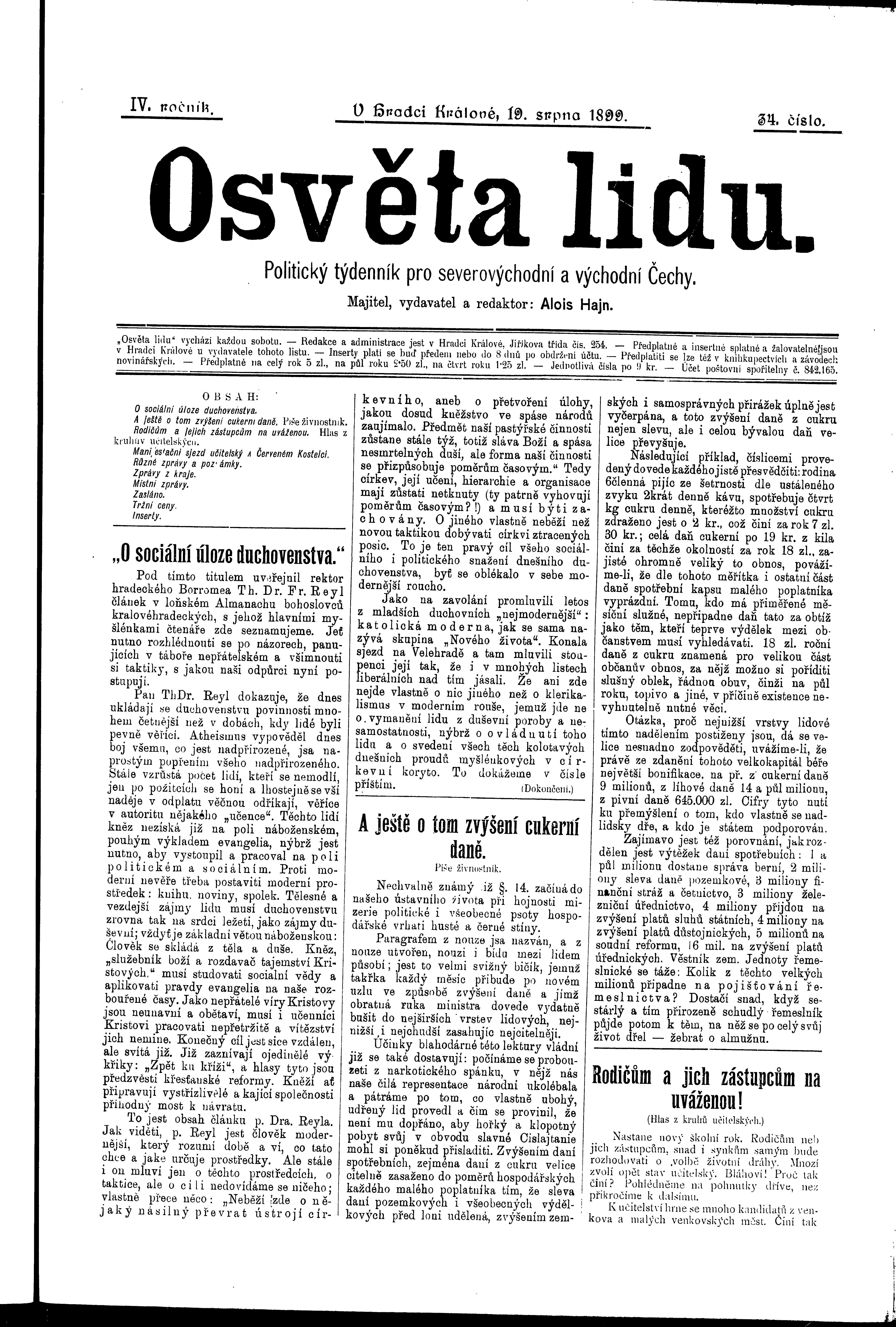 * Datum vydání výtisku: 19.8.1899 Číslo výtisku: 34 Poznámky k výtisku: ranní vydání