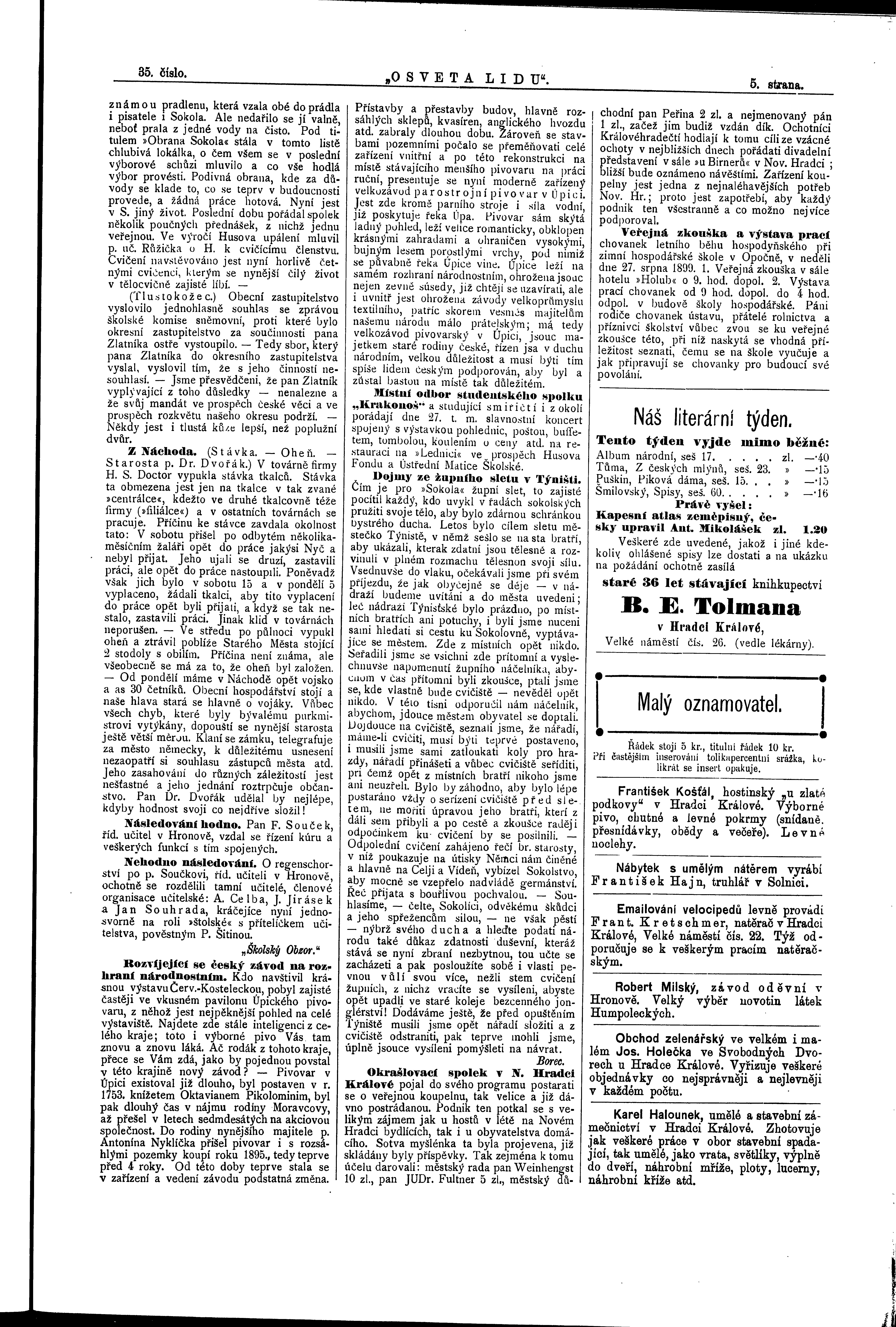 * Datum vydání výtisku: 26.8.1899 Číslo výtisku: 35 Poznámky k výtisku: ranní vydání