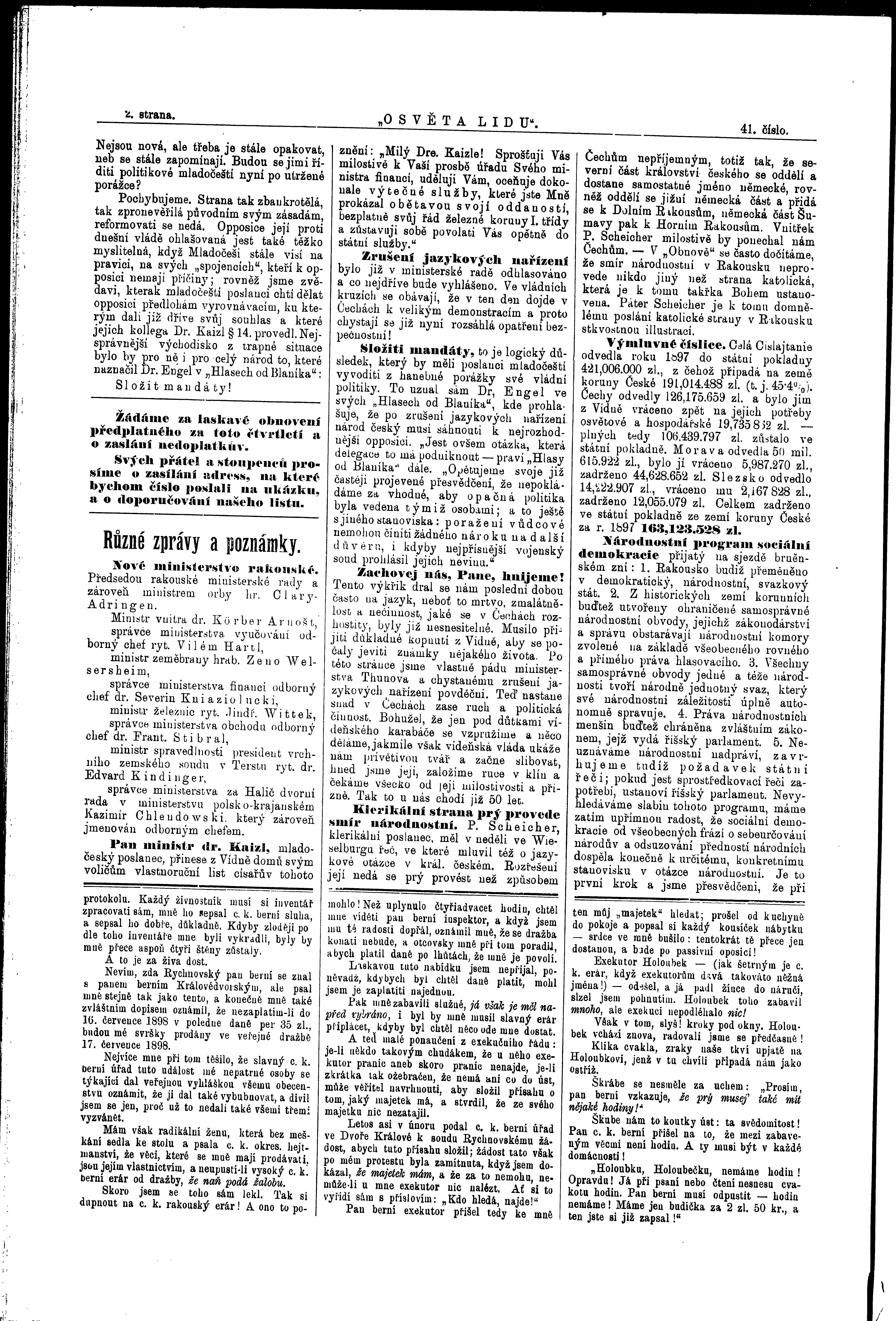 * Datum vydání výtisku: 7.10.1899 Číslo výtisku: 41 Poznámky k výtisku: ranní vydání