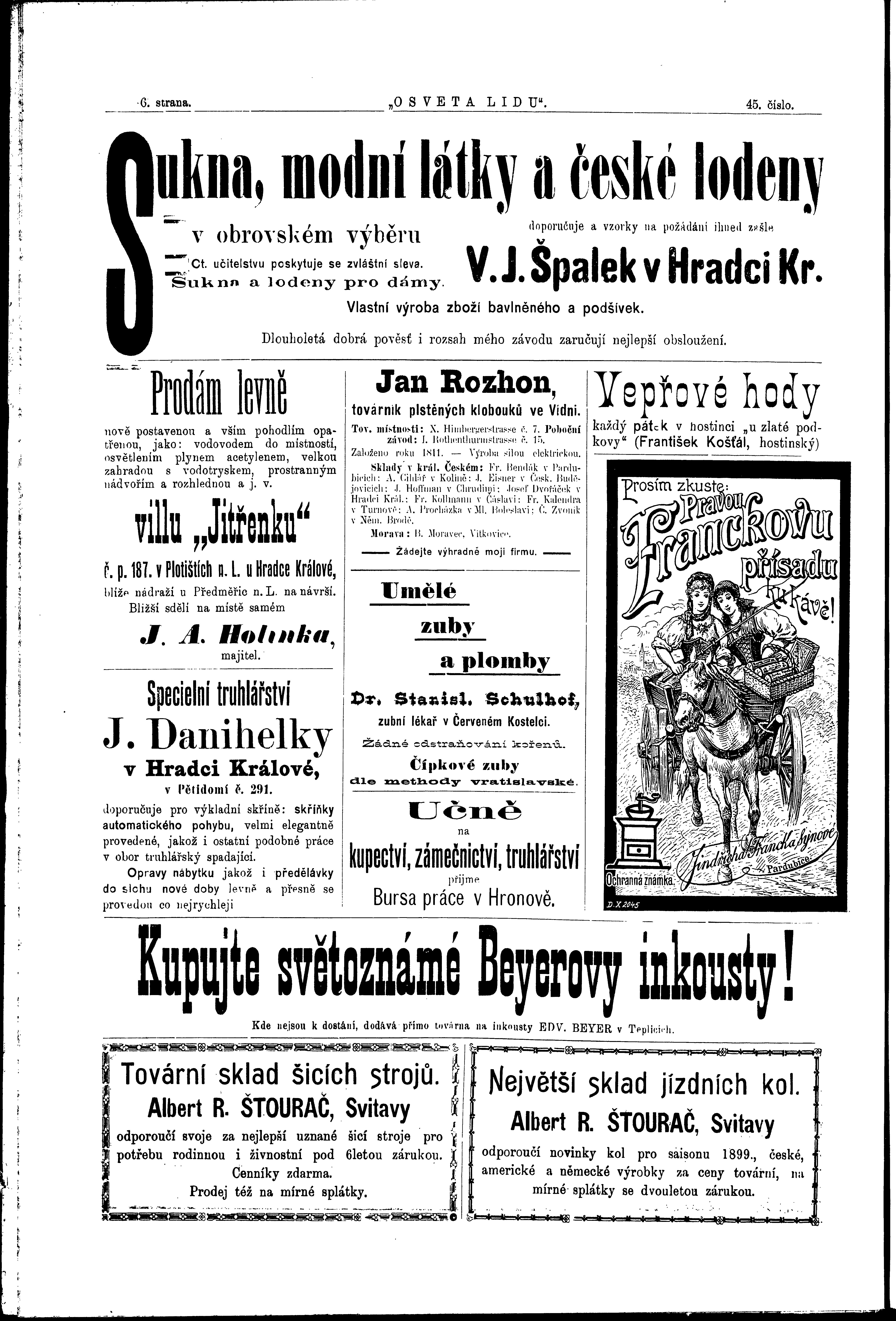 * Datum vydání výtisku: 4.11.1899 Číslo výtisku: 45 Poznámky k výtisku: ranní vydání