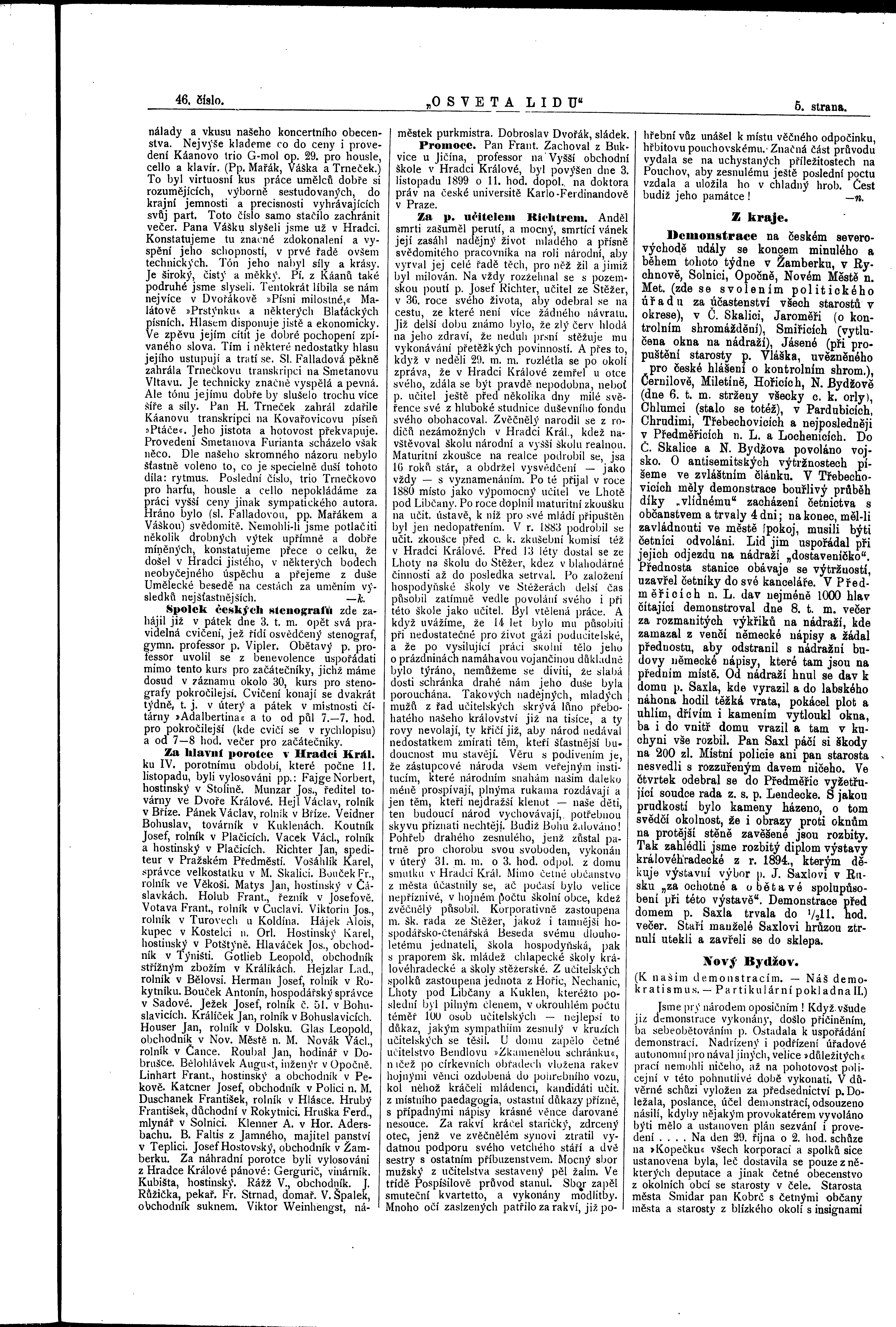 * Datum vydání výtisku: 11.11.1899 Číslo výtisku: 46 Poznámky k výtisku: ranní vydání