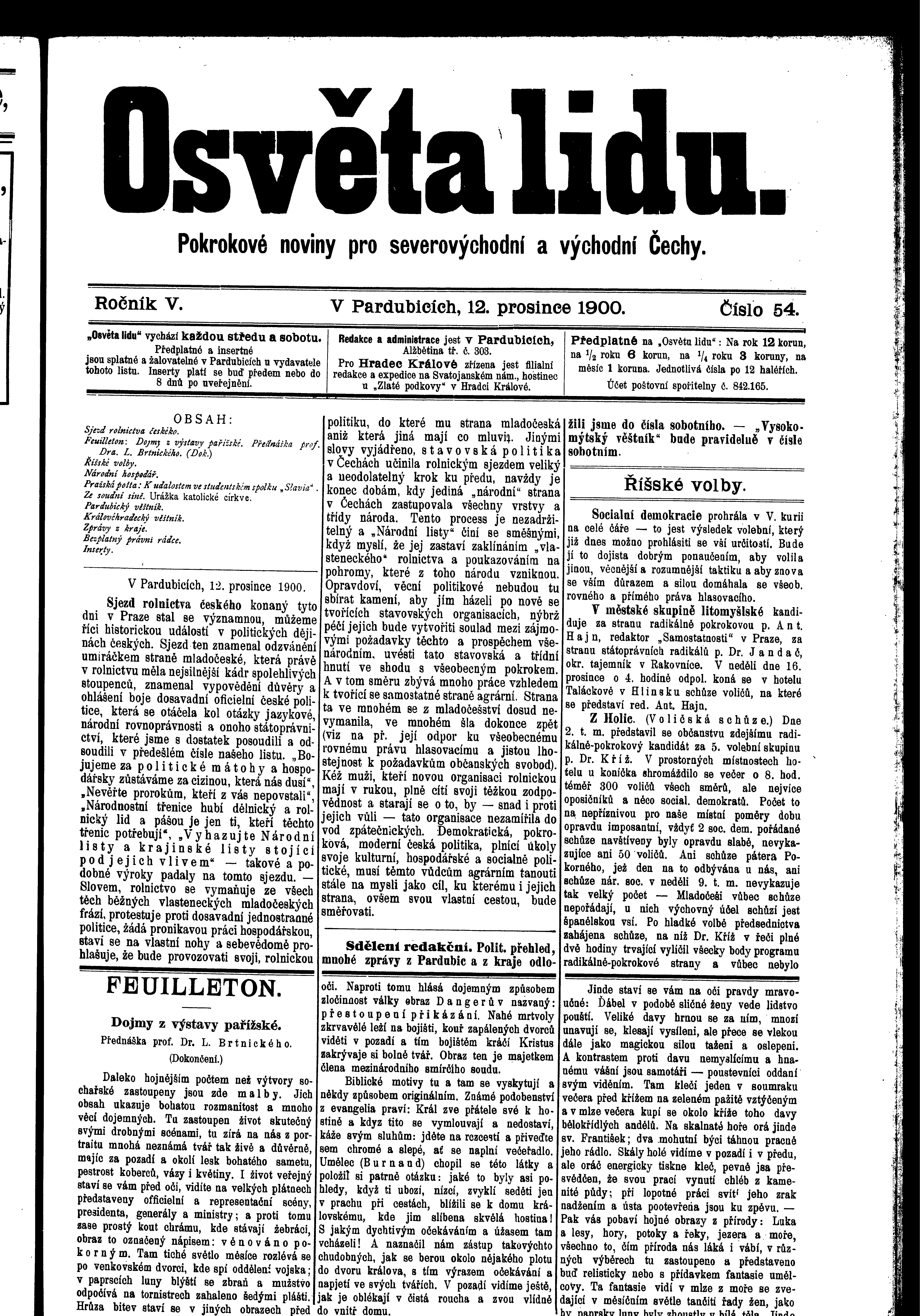 * Datum vydání ročníku: 1900 Číslo ročníku: 5