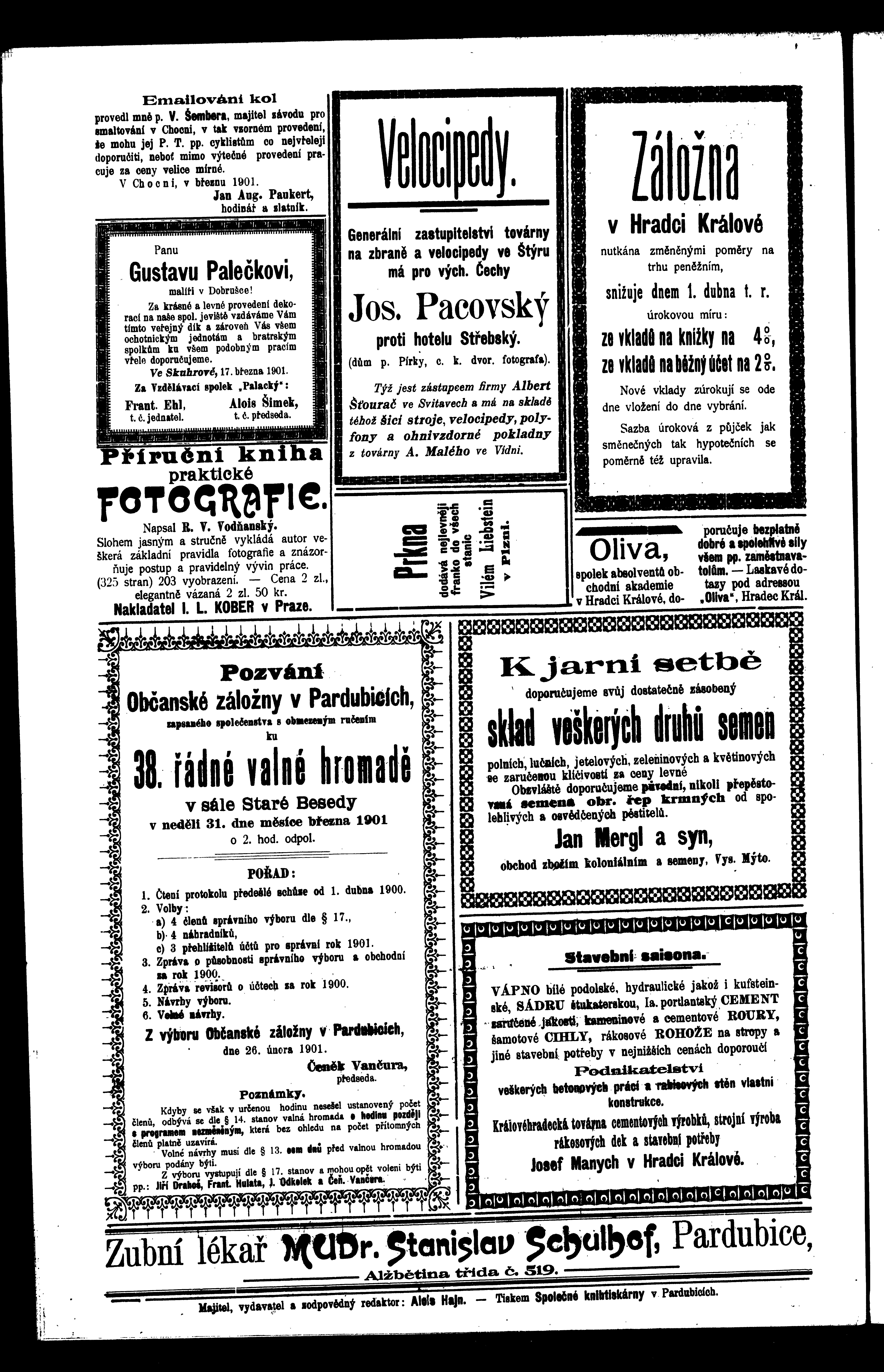 * Datum vydání výtisku: 20.3.1901 Číslo výtisku: 23 Poznámky k výtisku: ranní vydání