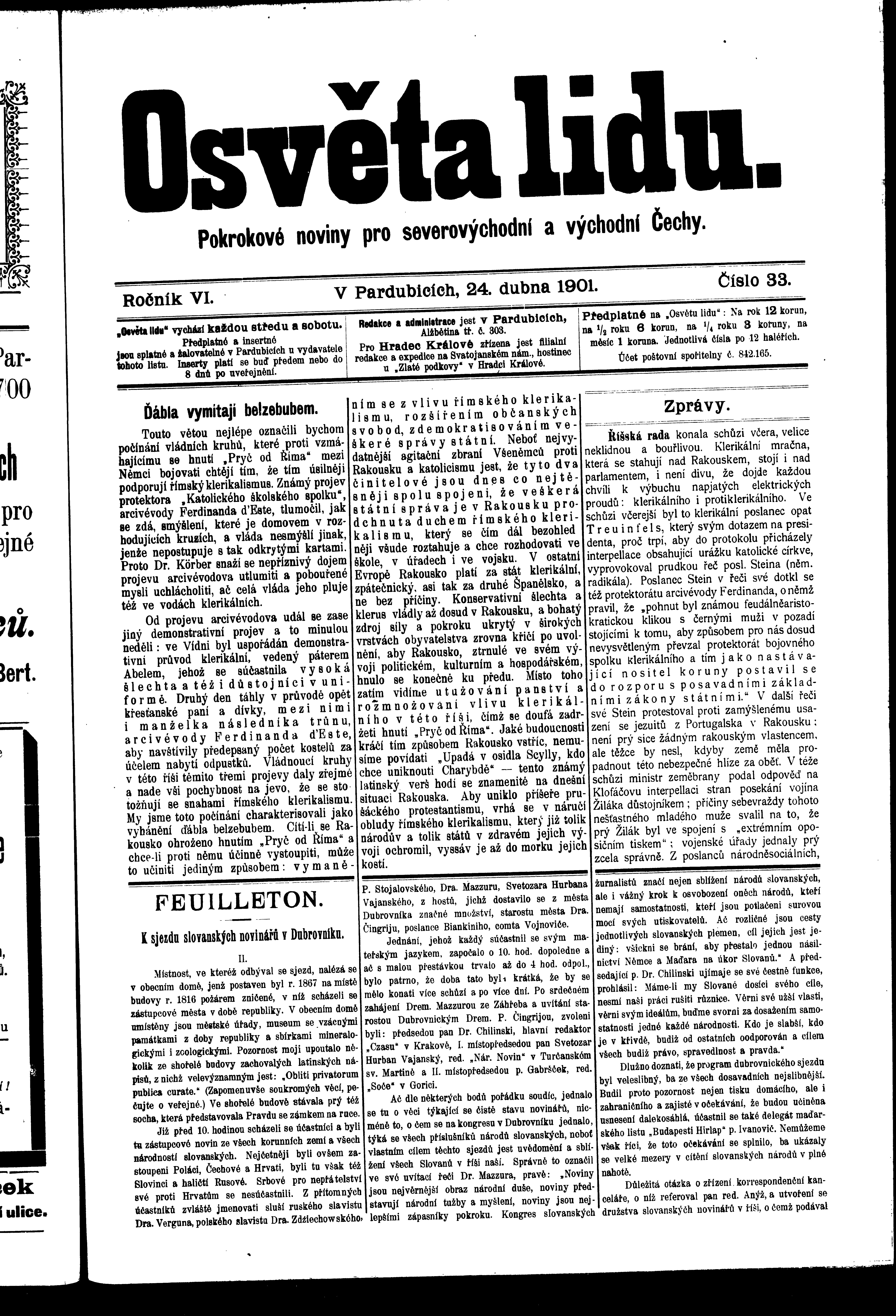 * Datum vydání výtisku: 24.4.1901 Číslo výtisku: 33 Poznámky k výtisku: ranní vydání