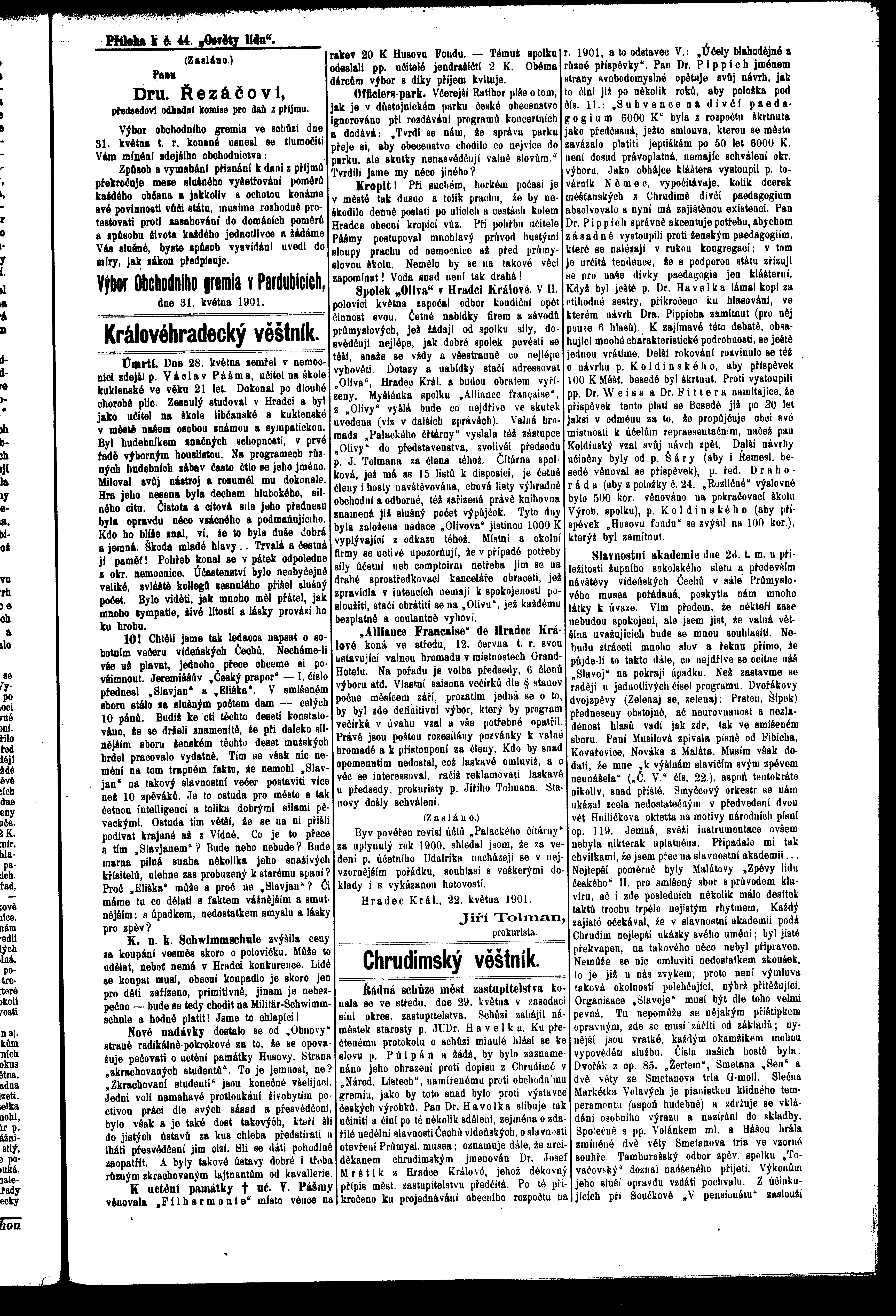 * Datum vydání výtisku: 1.6.1901 Číslo výtisku: 44 Typ výtisku: příloha