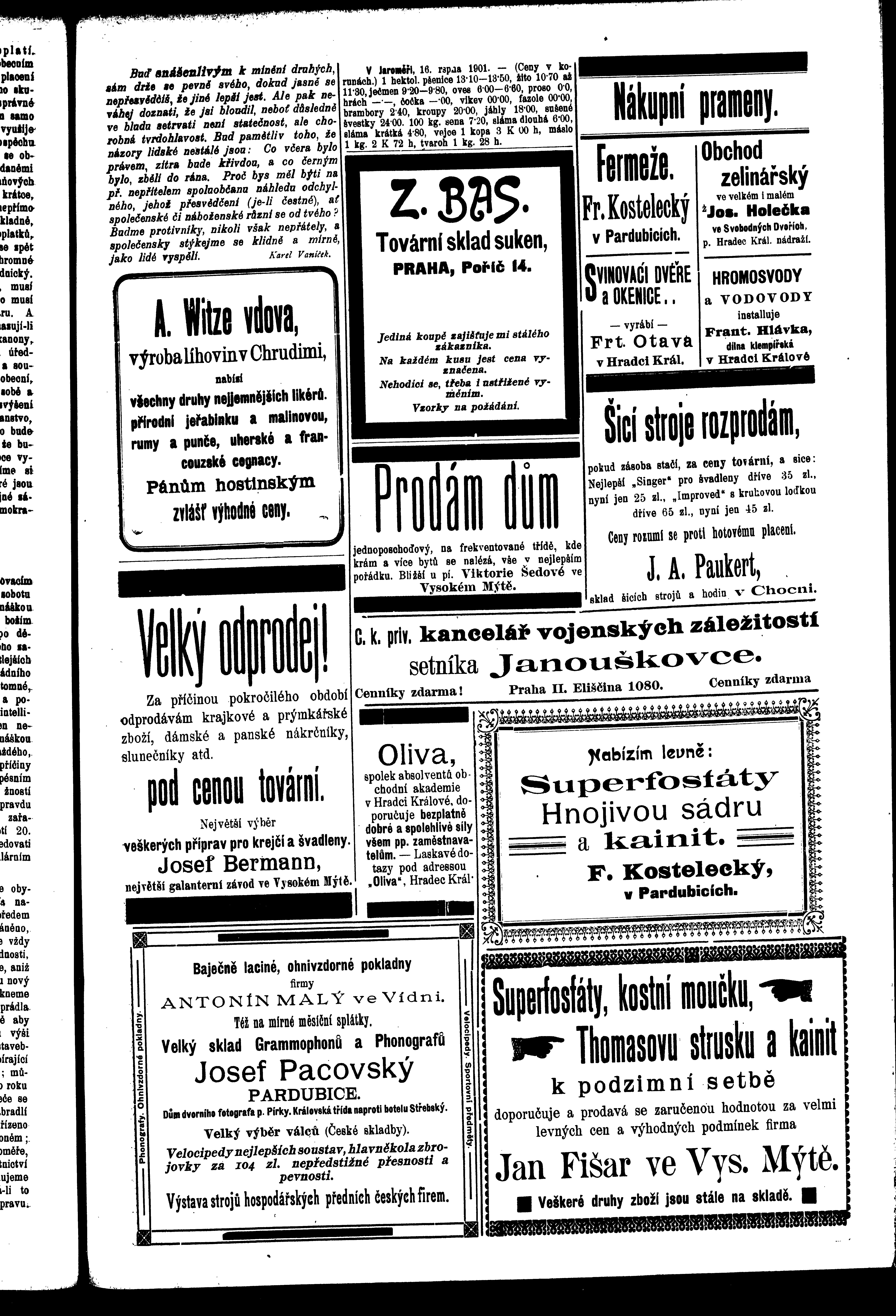* Datum vydání výtisku: 17.8.1901 Číslo výtisku: 66 Poznámky k výtisku: ranní vydání