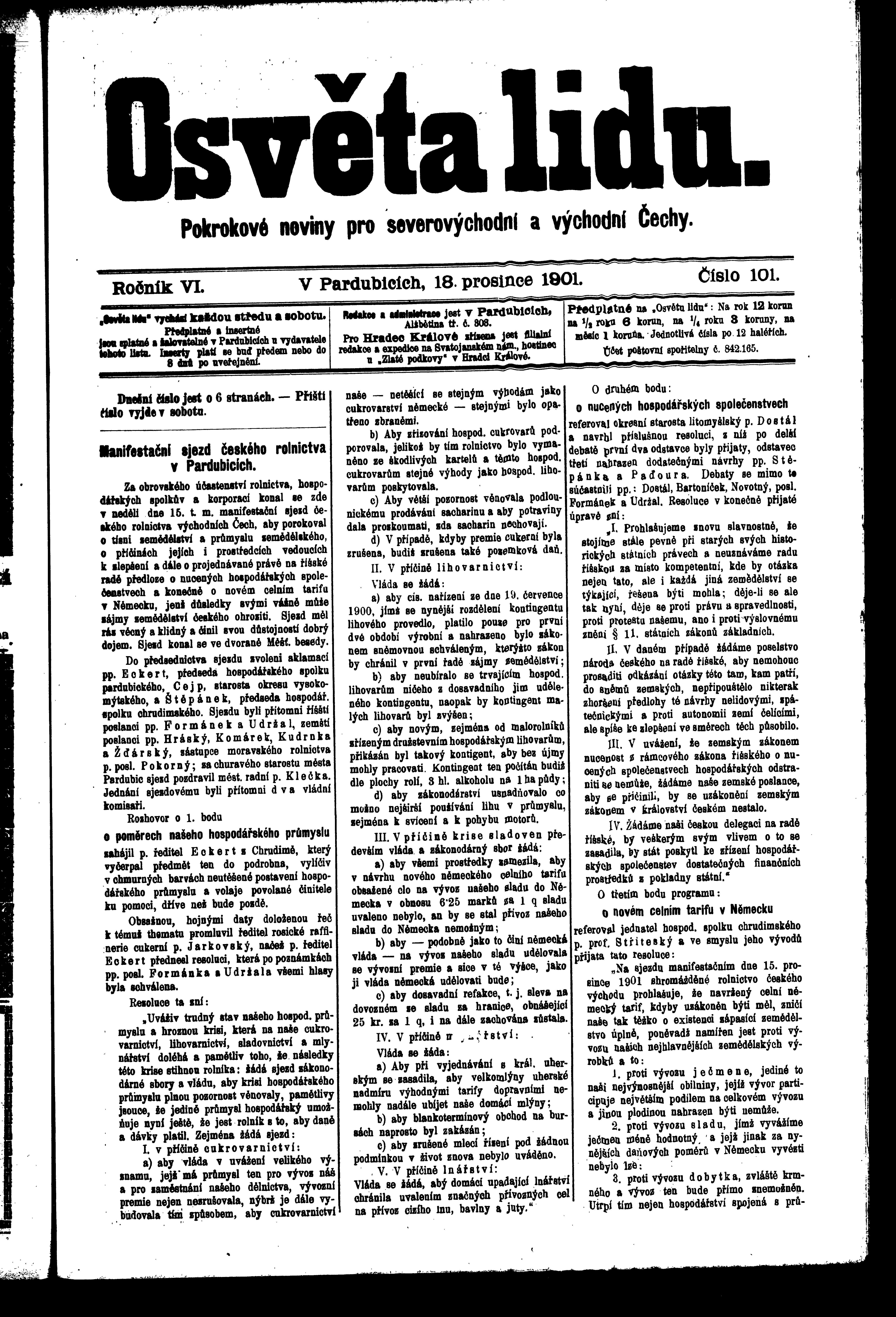 * Datum vydání výtisku: 18.12.1901 Číslo výtisku: 101 Poznámky k výtisku: ranní vydání