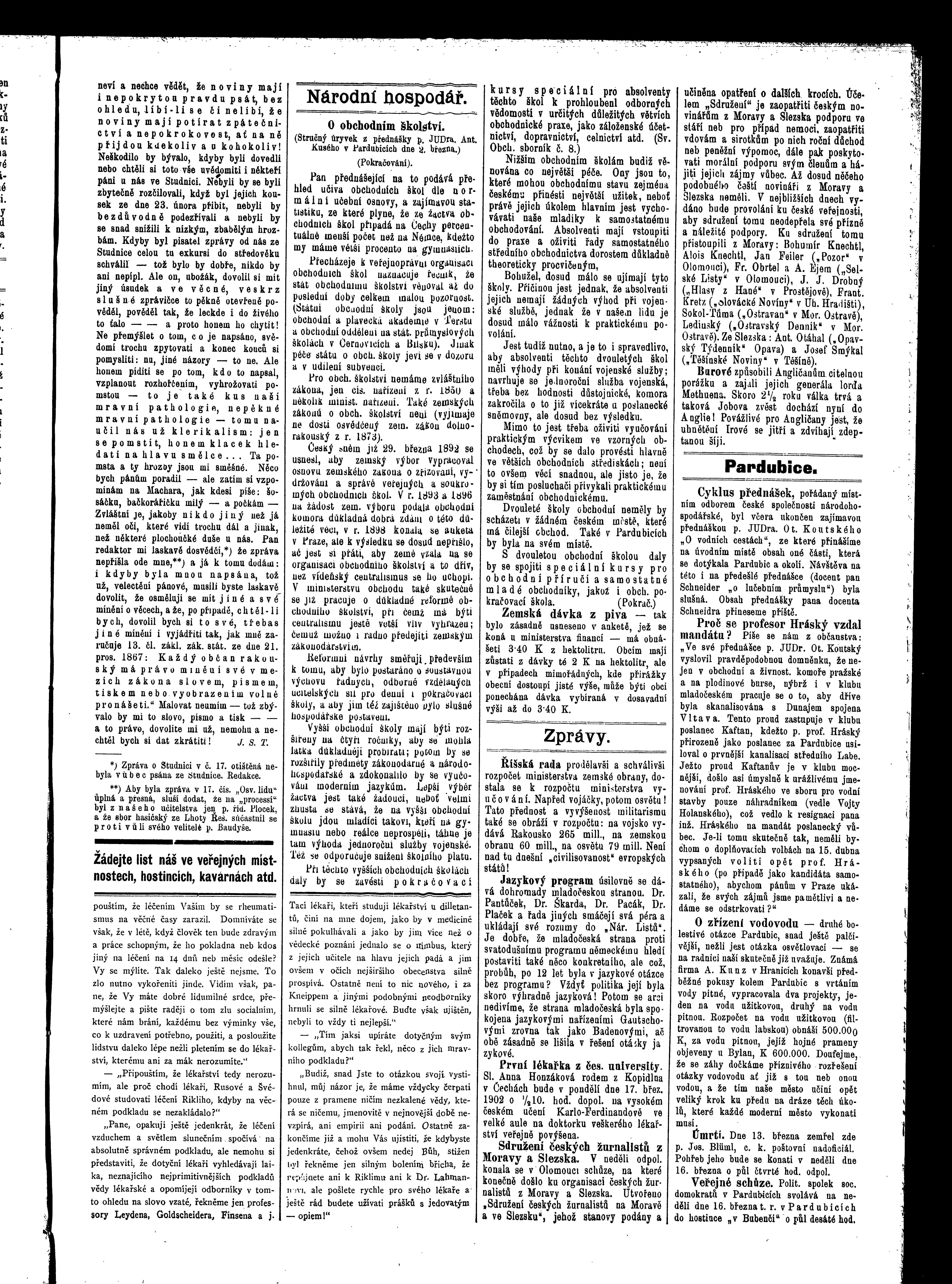 * Datum vydání výtisku: 15.3.1902 Číslo výtisku: 21 Poznámky k výtisku: ranní vydání