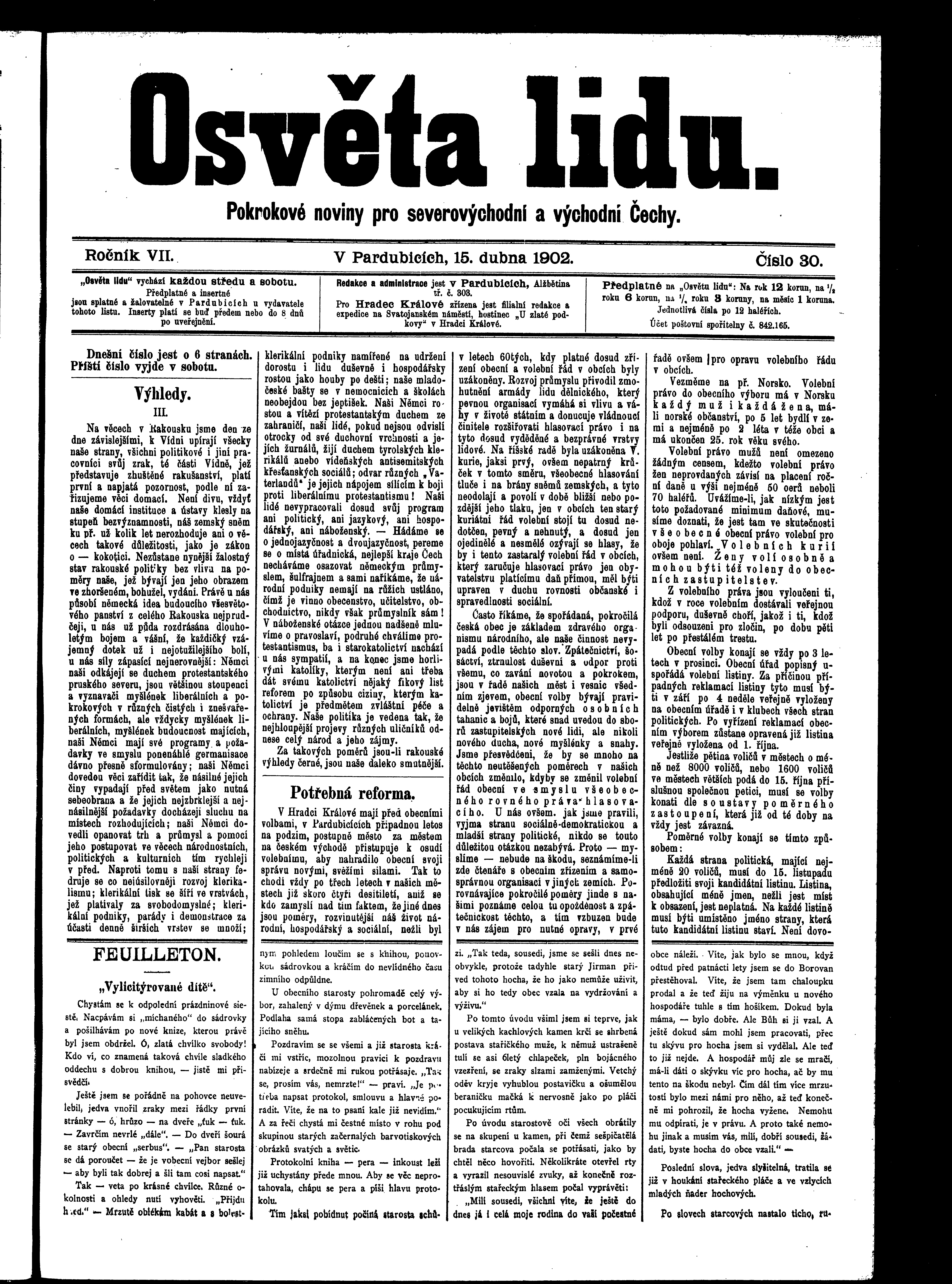 * Datum vydání výtisku: 15.4.1902 Číslo výtisku: 30 Poznámky k výtisku: ranní vydání