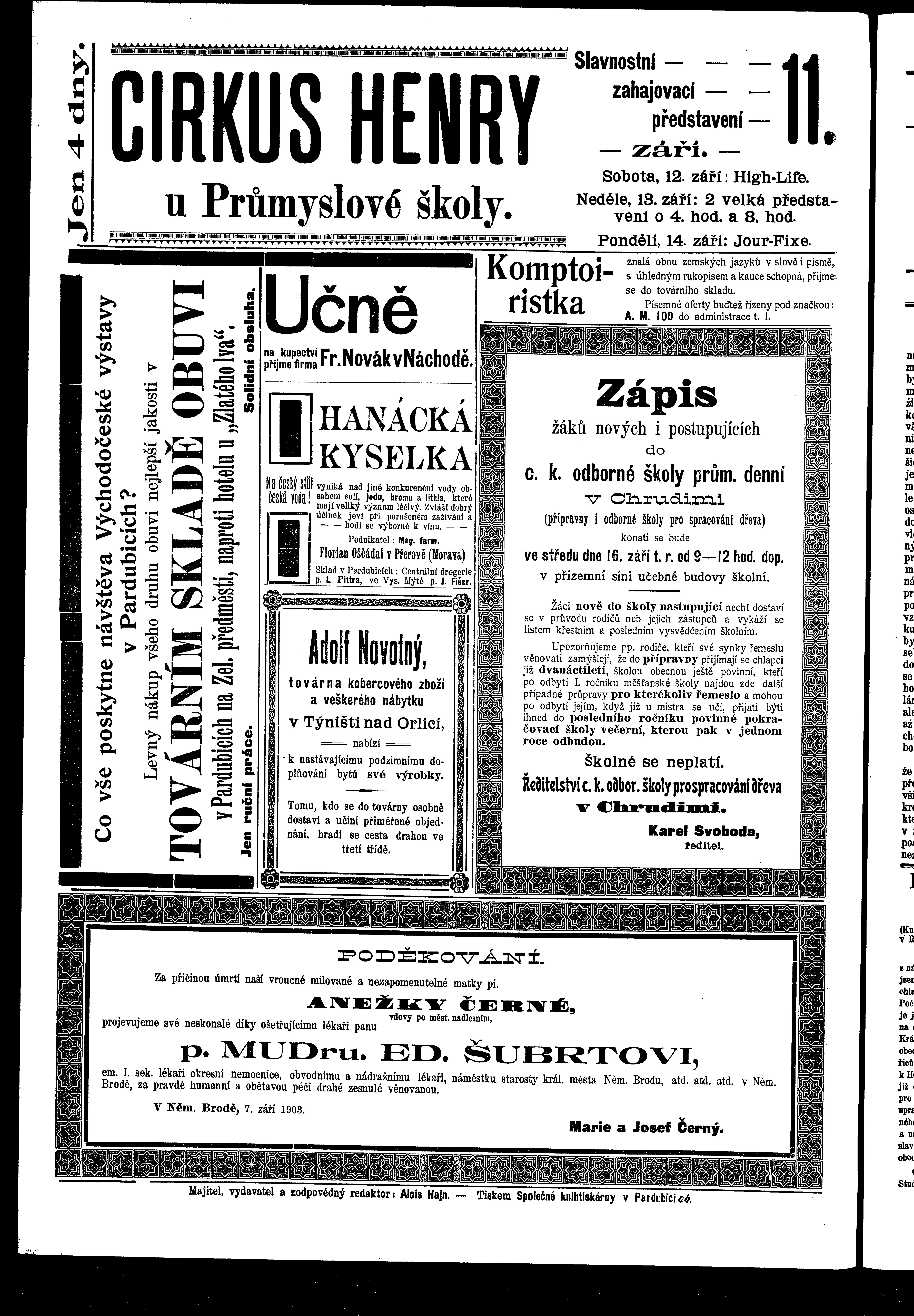 * Datum vydání výtisku: 9.9.1903 Číslo výtisku: 77 Poznámky k výtisku: ranní vydání