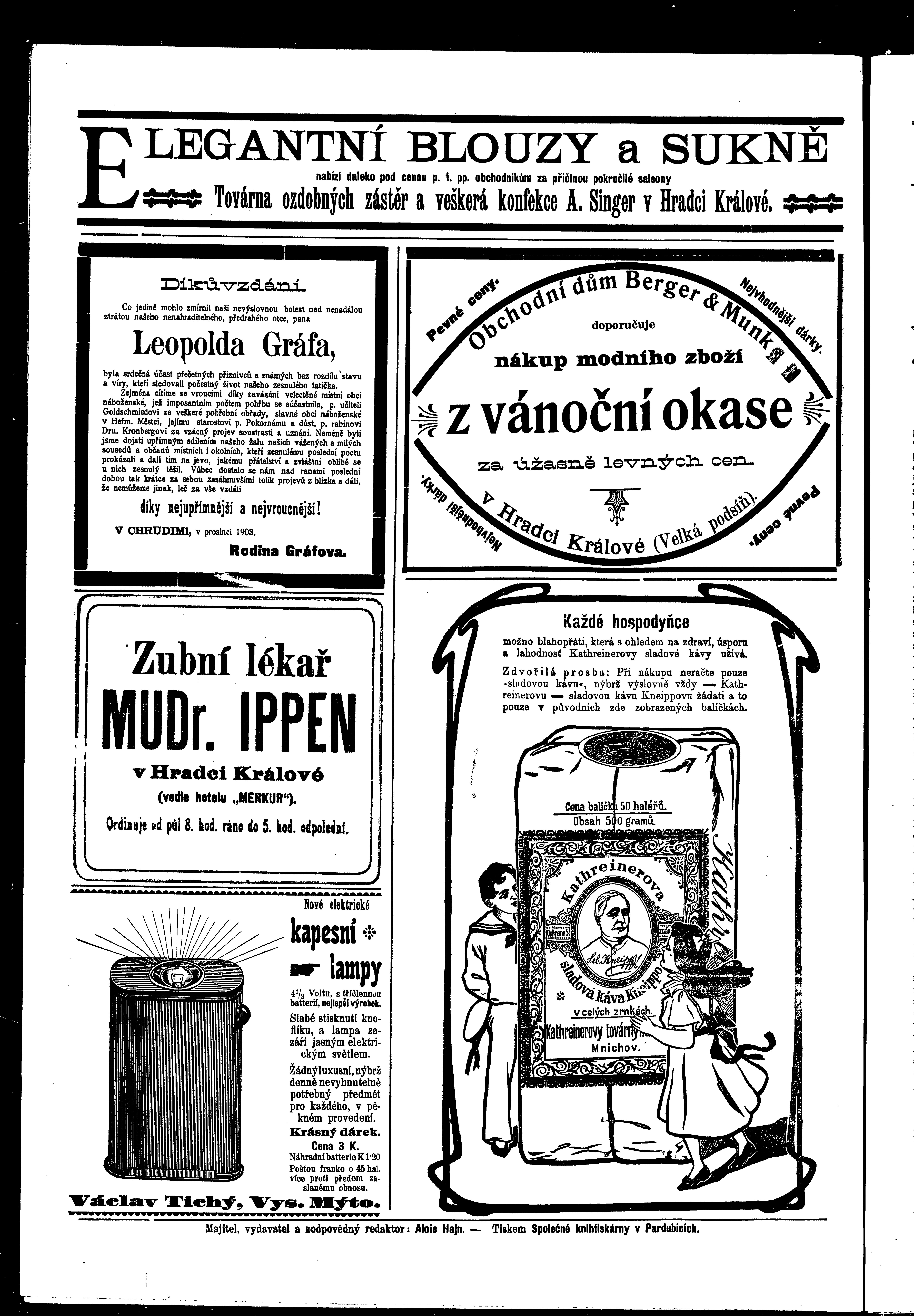 * Datum vydání výtisku: 5.12.1903 Číslo výtisku: 101 - 102 Poznámky k výtisku: ranní vydání