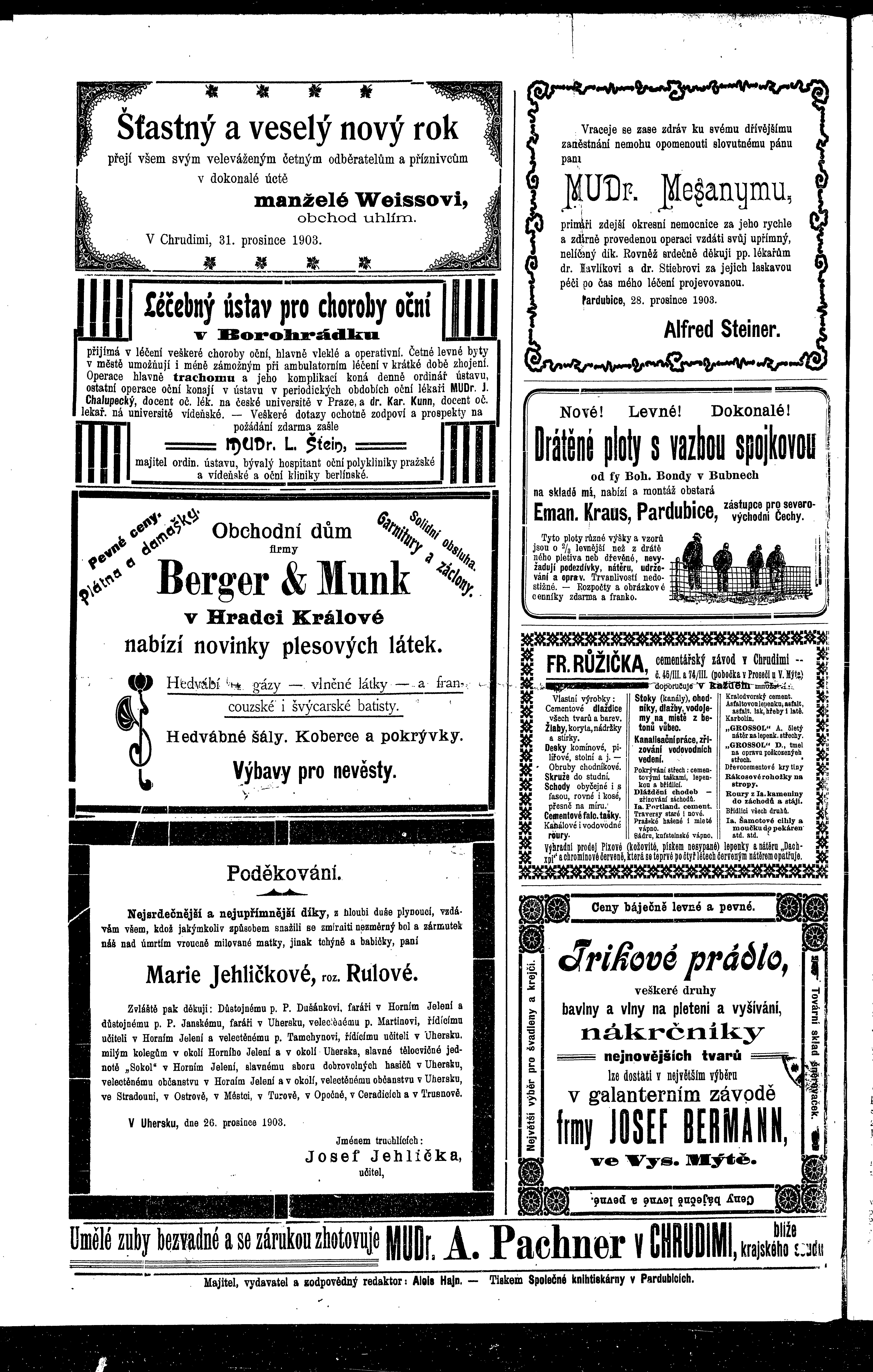* Datum vydání výtisku: 1.1.1904 Číslo výtisku: 1 - 2 Poznámky k výtisku: ranní vydání