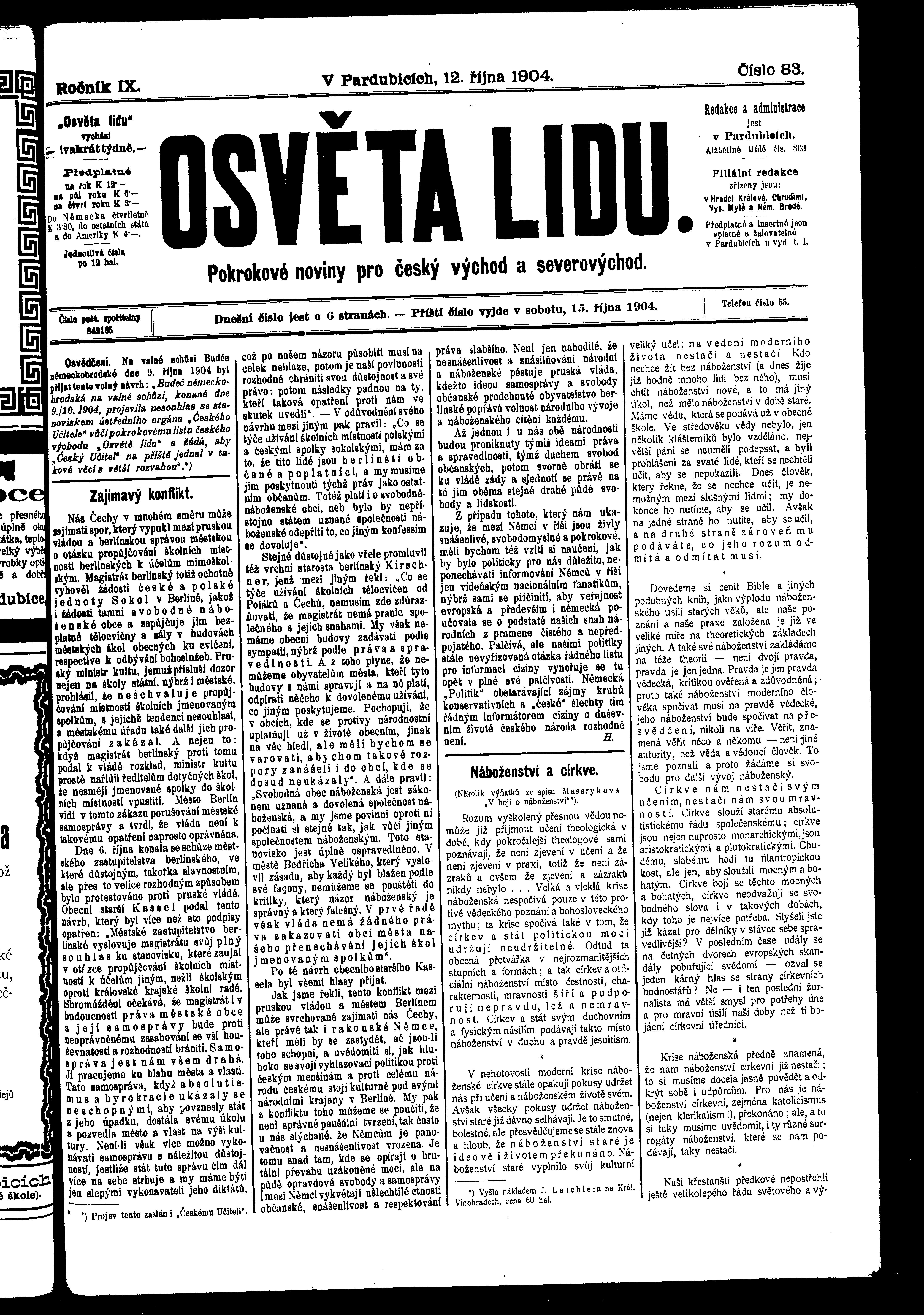 * Datum vydání výtisku: 12.10.1904 Číslo výtisku: 83 Poznámky k výtisku: ranní vydání