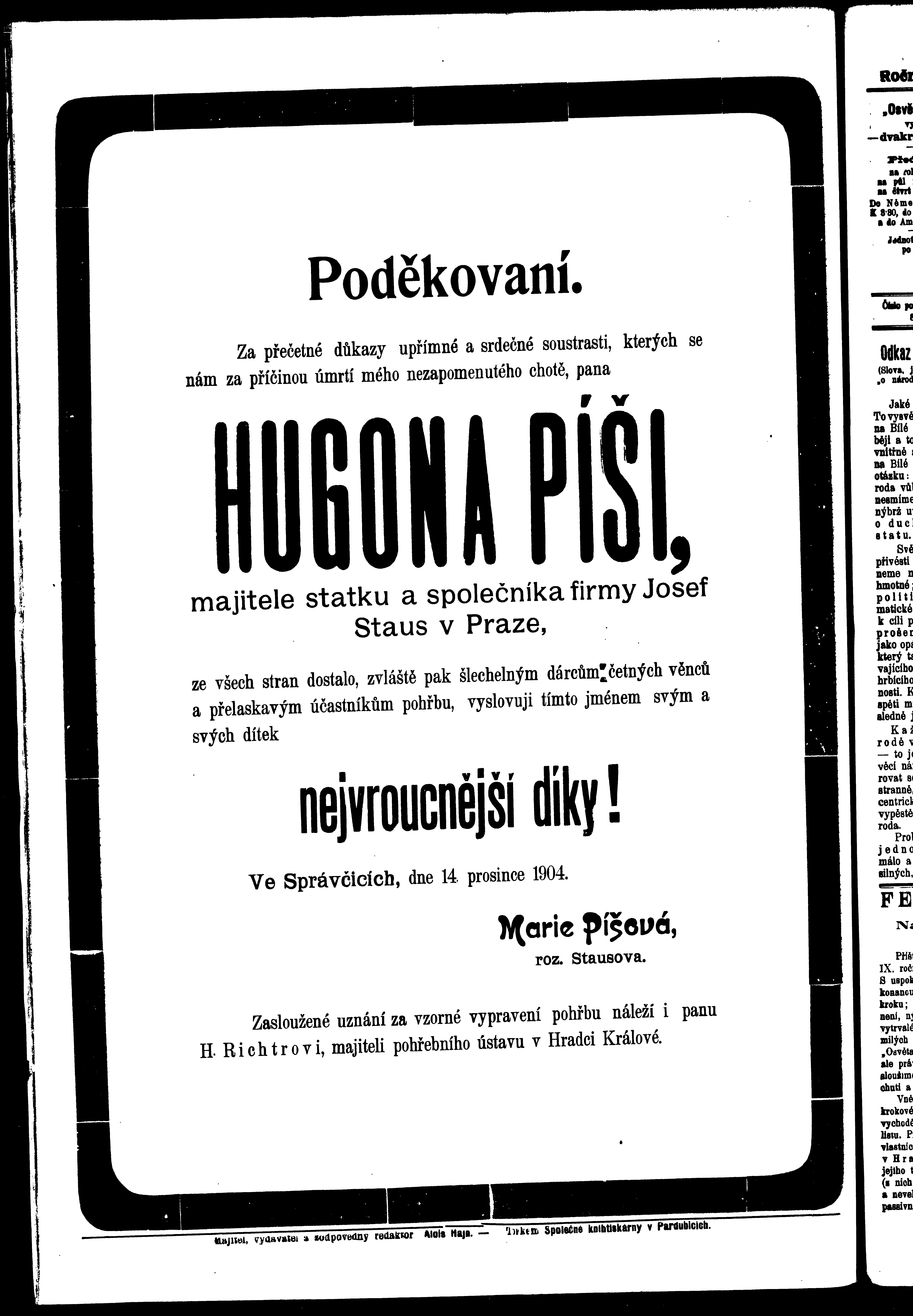 * Datum vydání výtisku: 17.12.1904 Číslo výtisku: 102 Poznámky k výtisku: ranní vydání