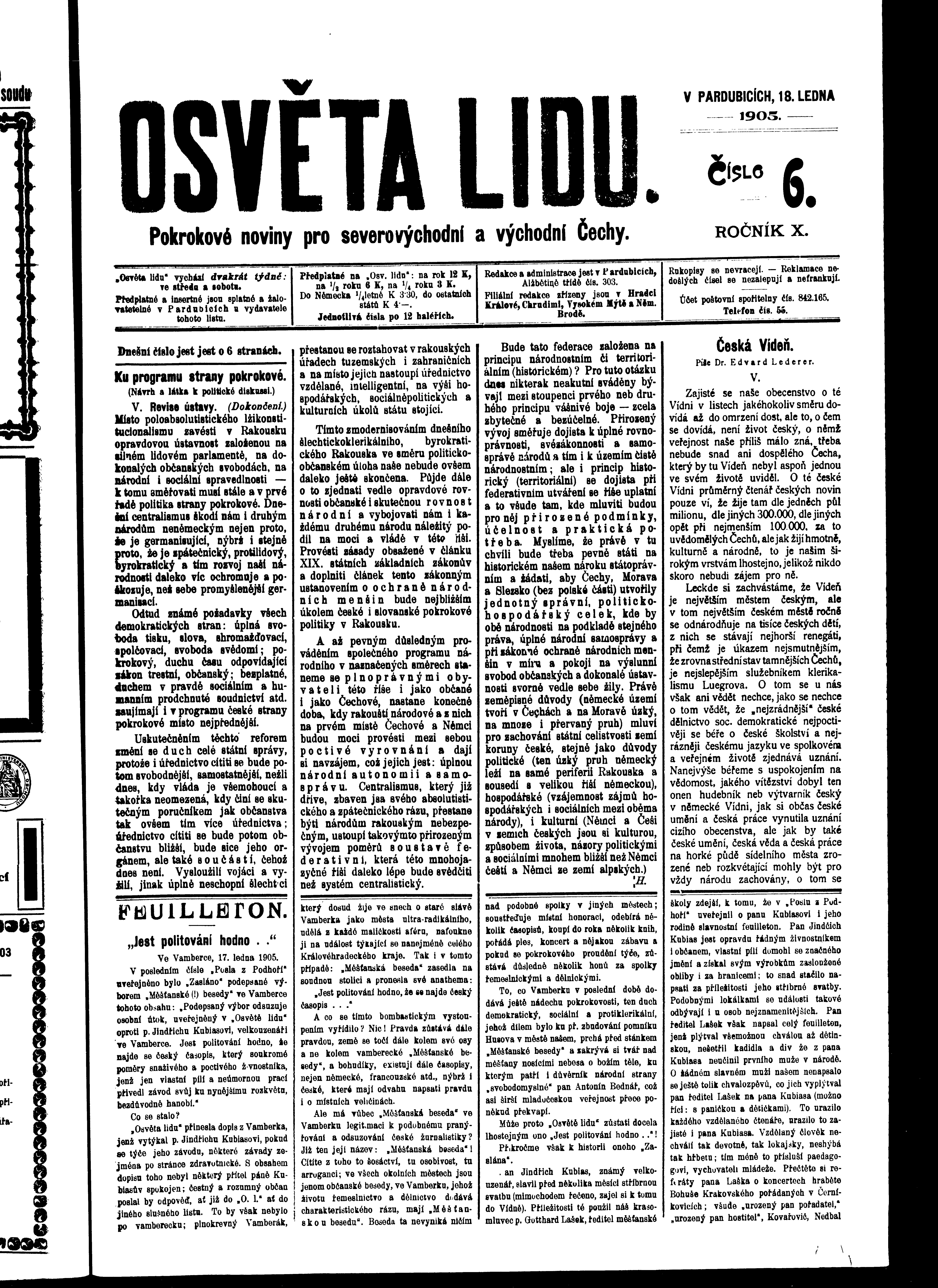 * Datum vydání výtisku: 18.1.1905 Číslo výtisku: 6 Poznámky k výtisku: ranní vydání