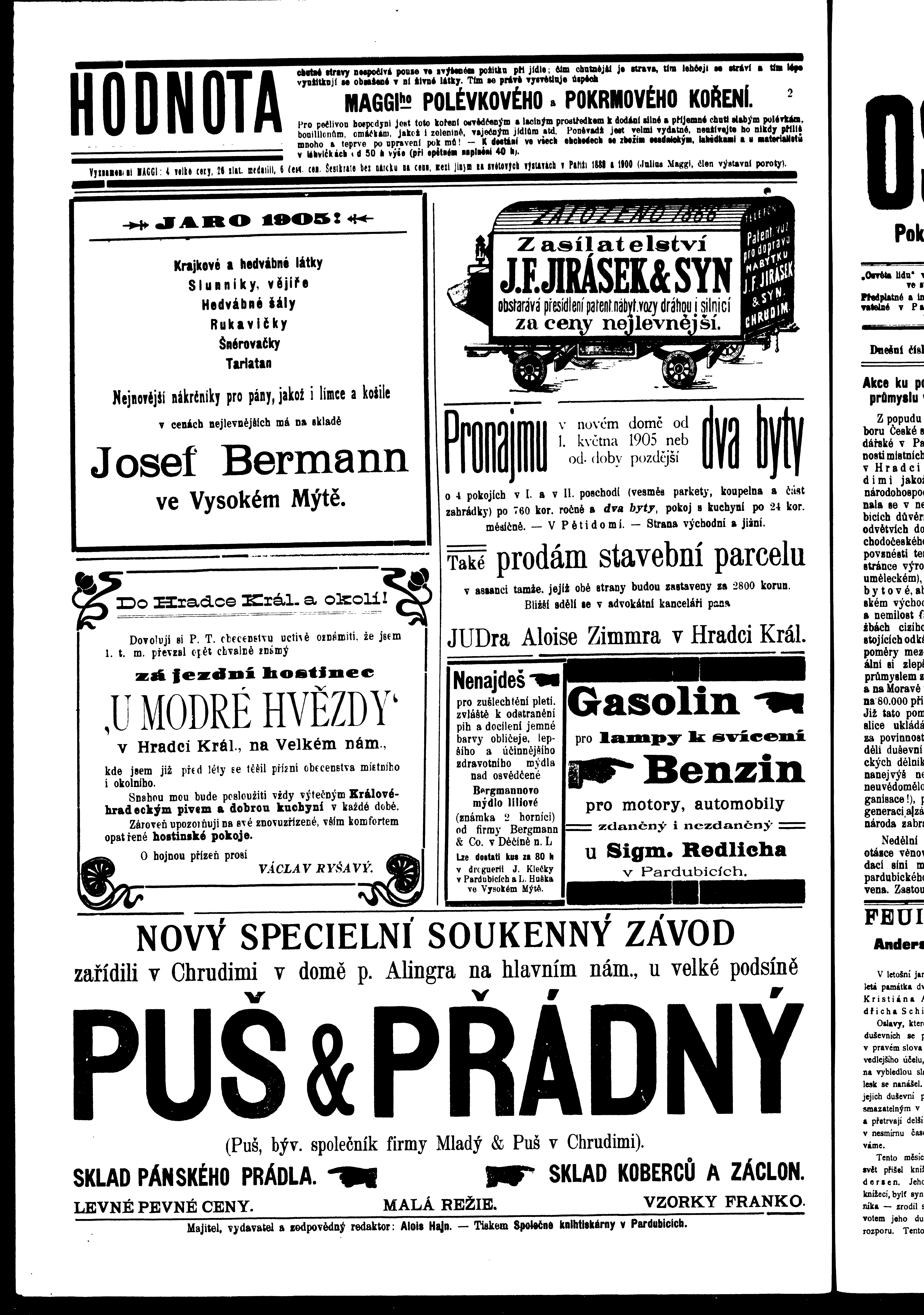 * Datum vydání výtisku: 8.4.1905 Číslo výtisku: 29 Poznámky k výtisku: ranní vydání