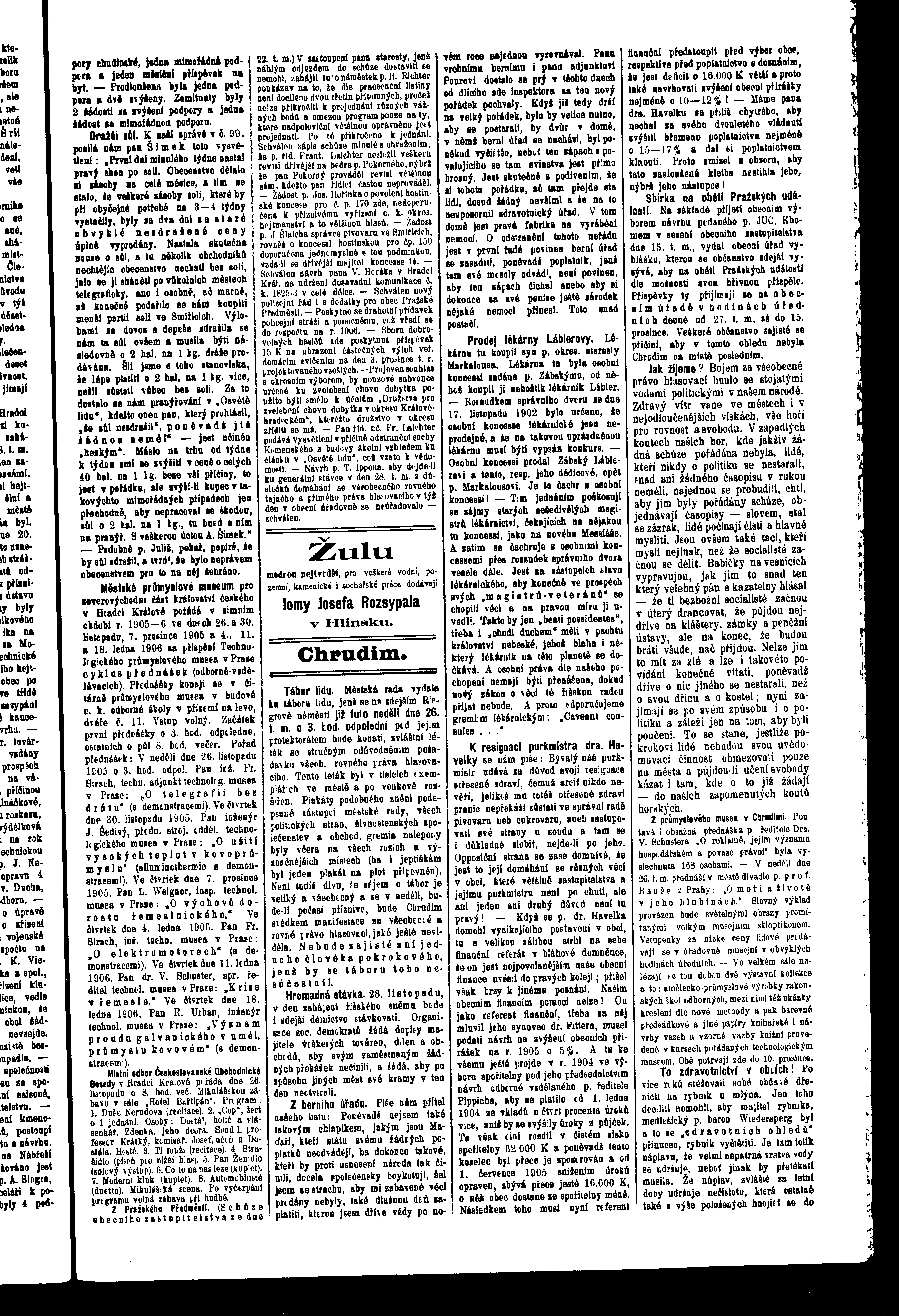* Datum vydání výtisku: 25.11.1905 Číslo výtisku: 102 Poznámky k výtisku: ranní vydání