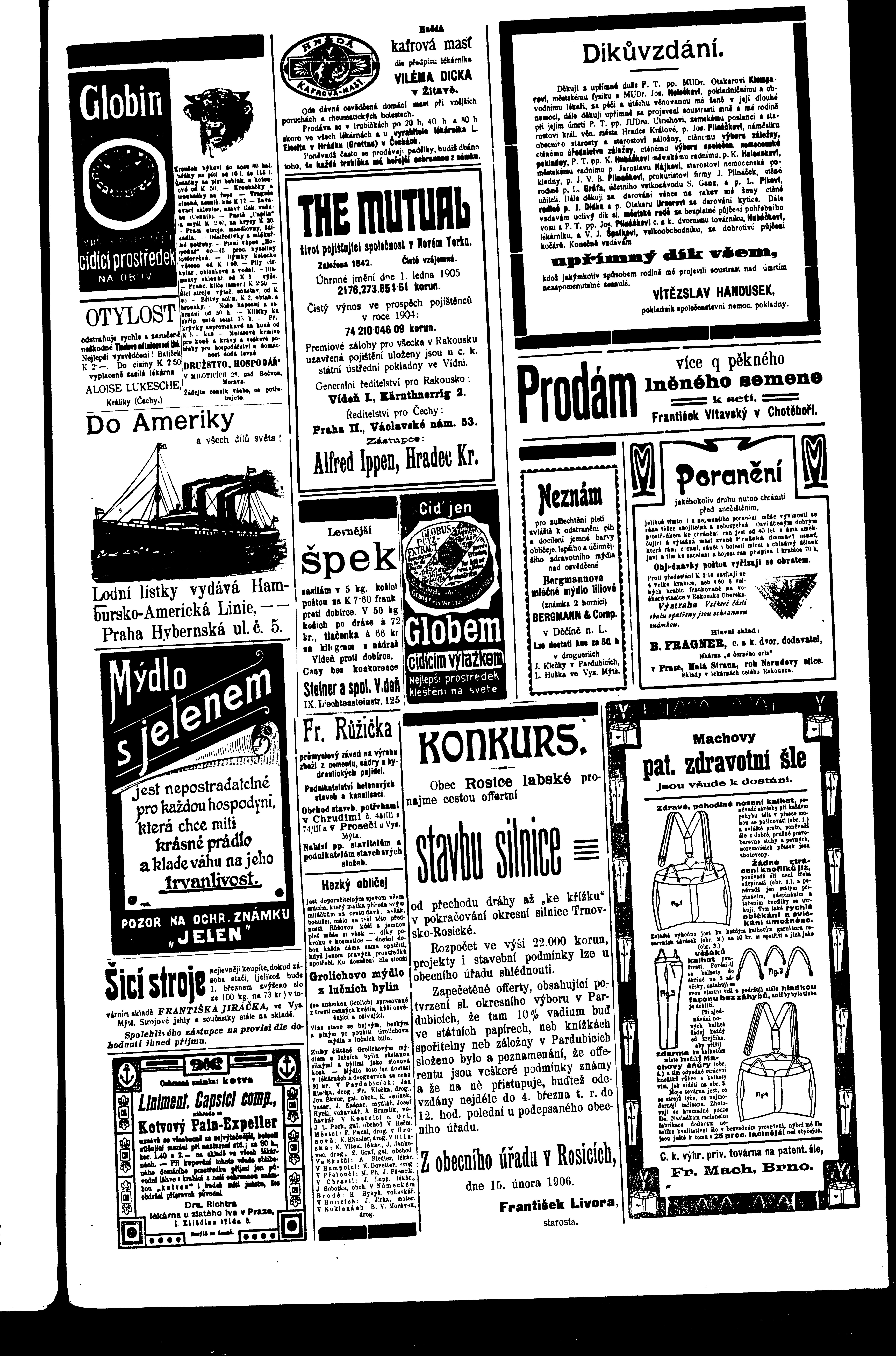 * Datum vydání výtisku: 17.2.1906 Číslo výtisku: 21 Poznámky k výtisku: ranní vydání
