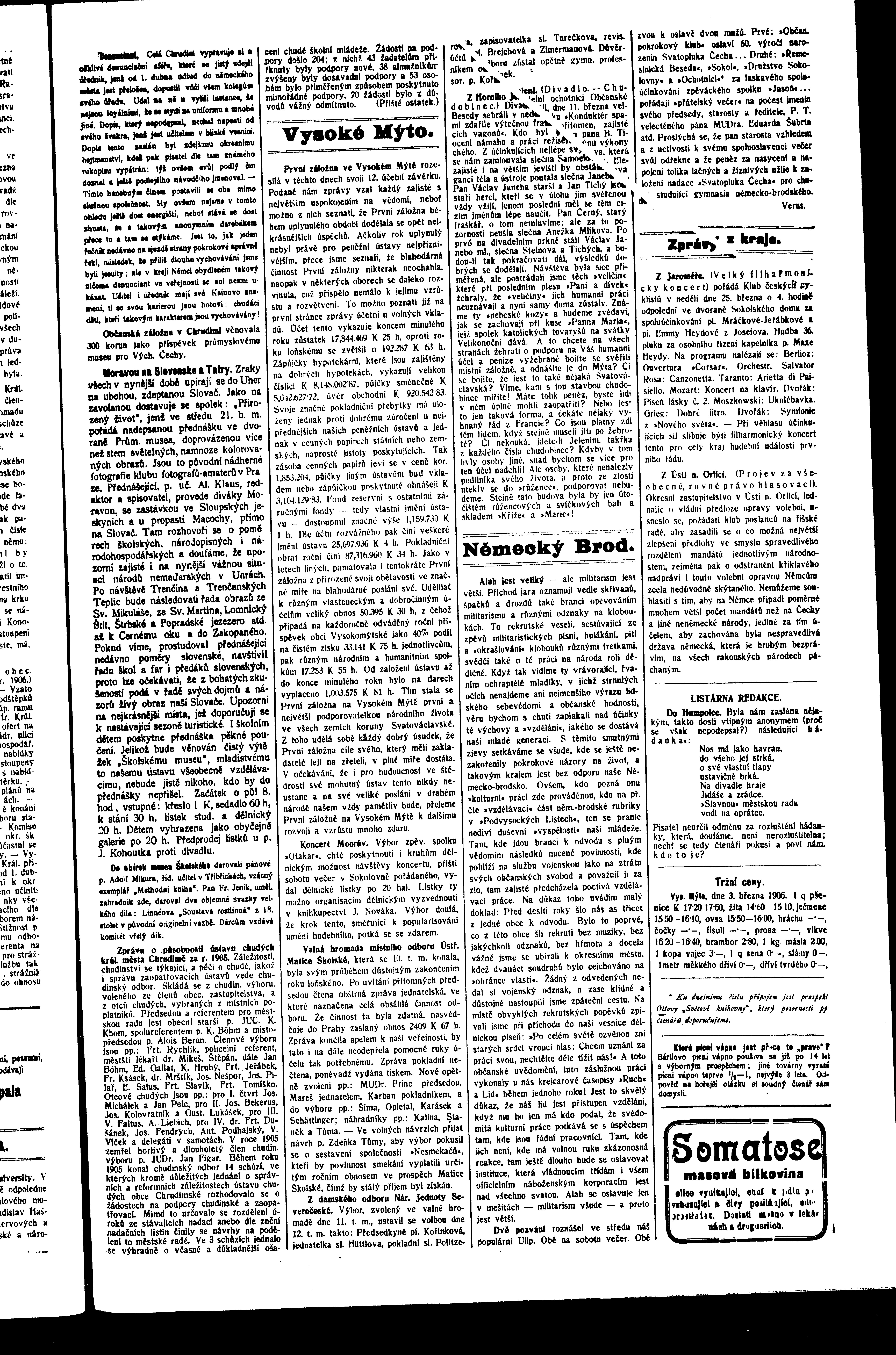 * Datum vydání výtisku: 15.3.1906 Číslo výtisku: 32 Poznámky k výtisku: ranní vydání