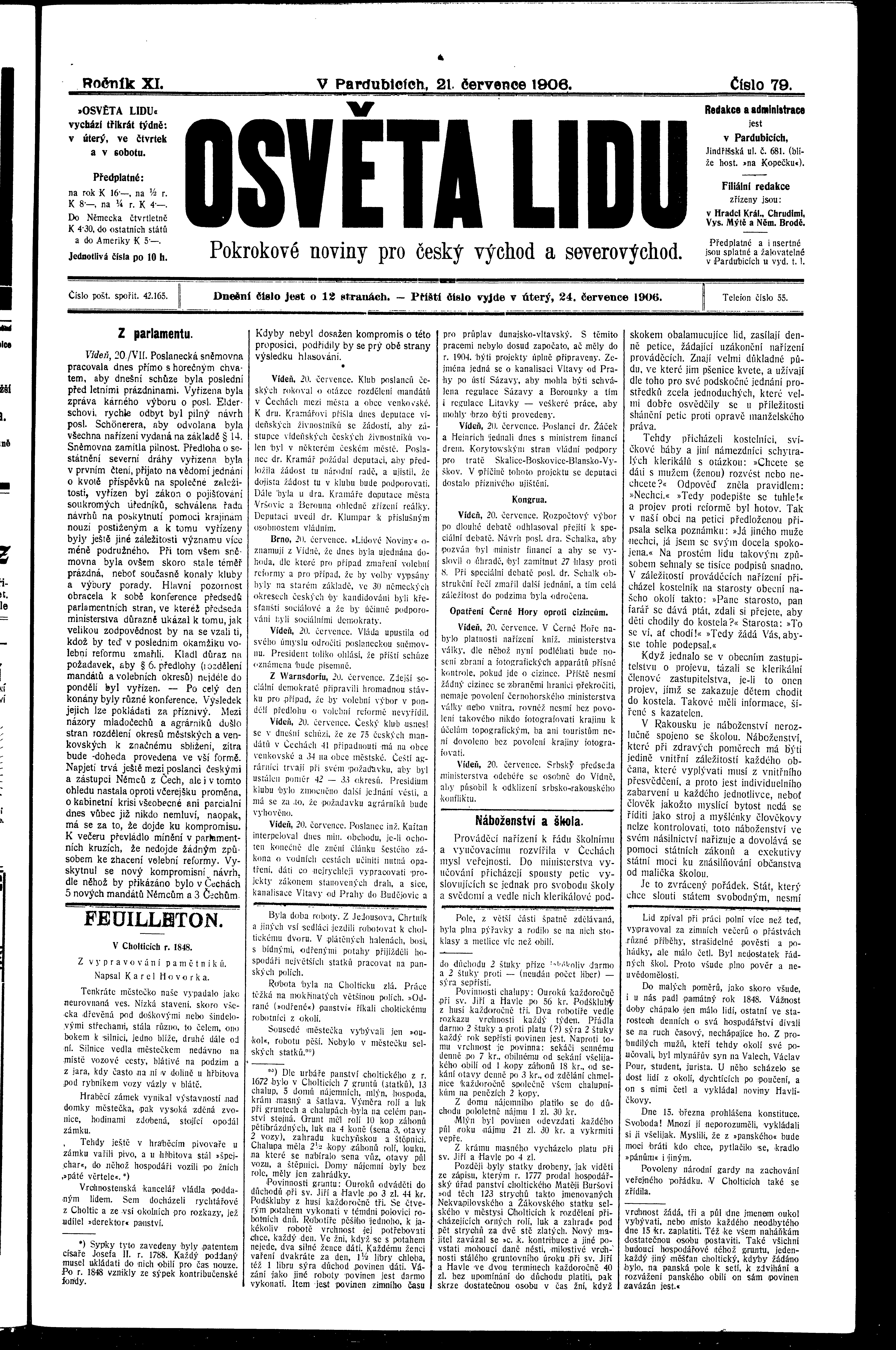 * Datum vydání výtisku: 21.7.1906 Číslo výtisku: 79 Poznámky k výtisku: ranní vydání