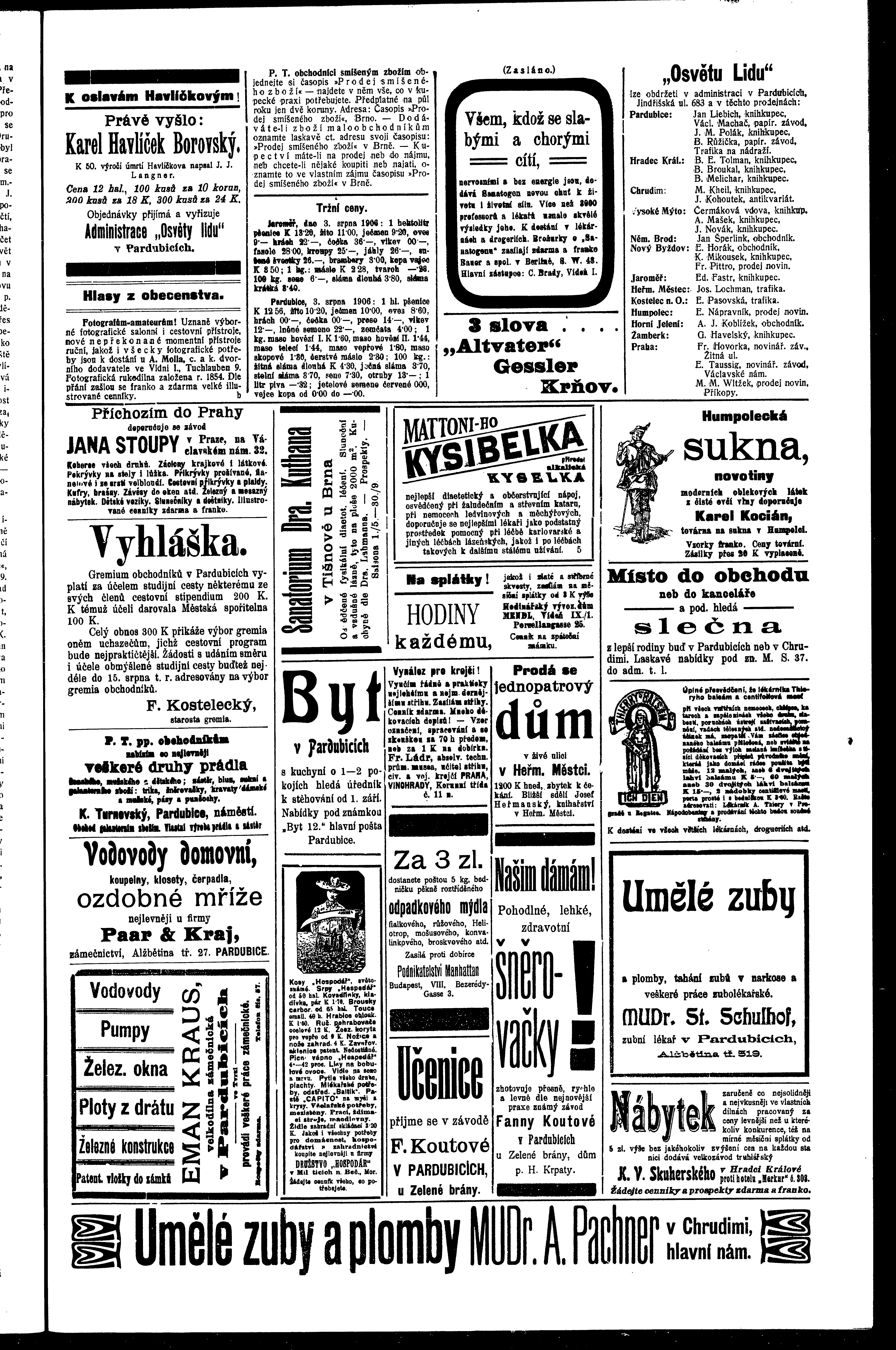 * Datum vydání výtisku: 4.8.1906 Číslo výtisku: 85 Poznámky k výtisku: ranní vydání