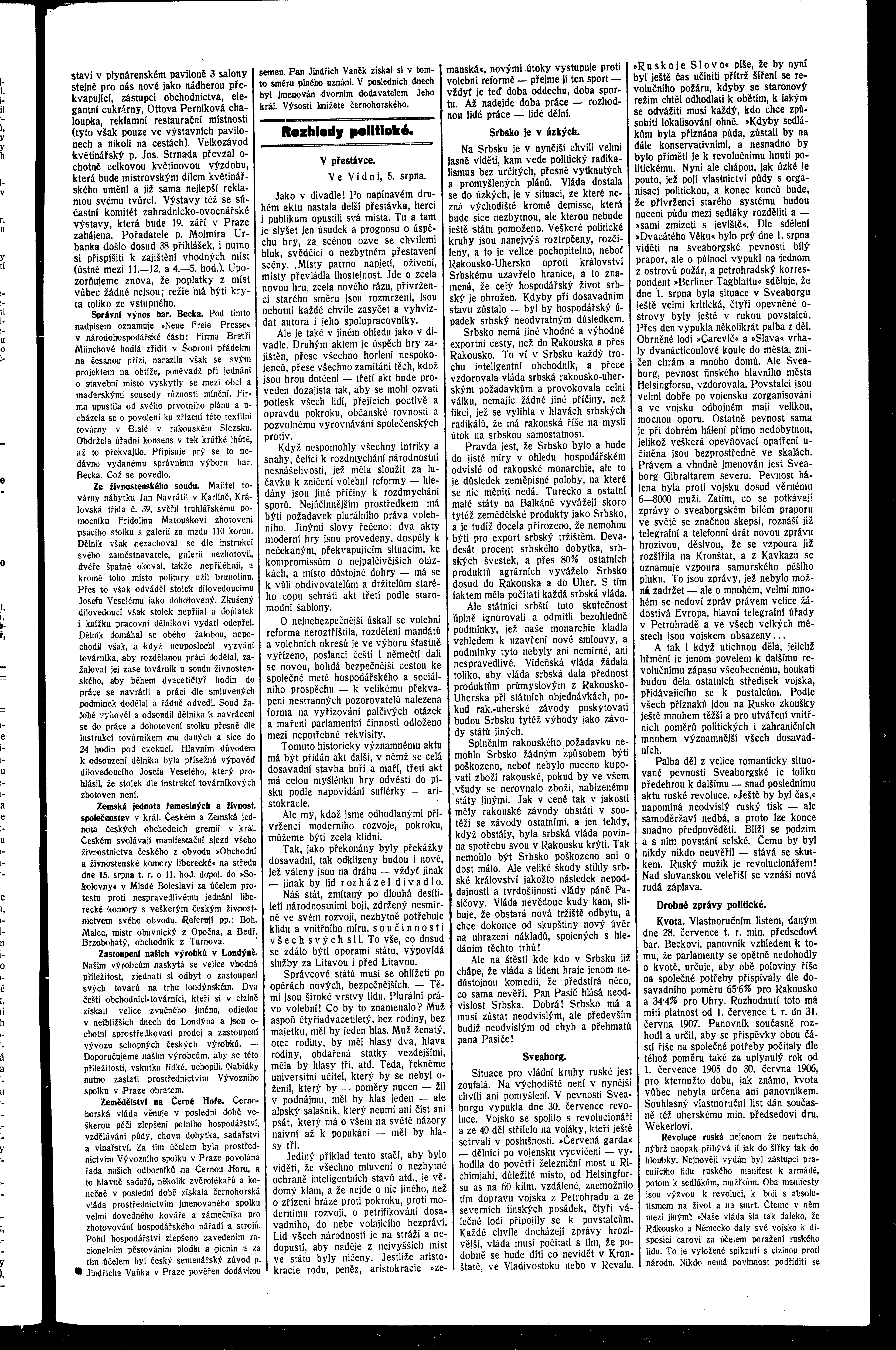 * Datum vydání výtisku: 8.8.1906 Číslo výtisku: 86 Poznámky k výtisku: ranní vydání