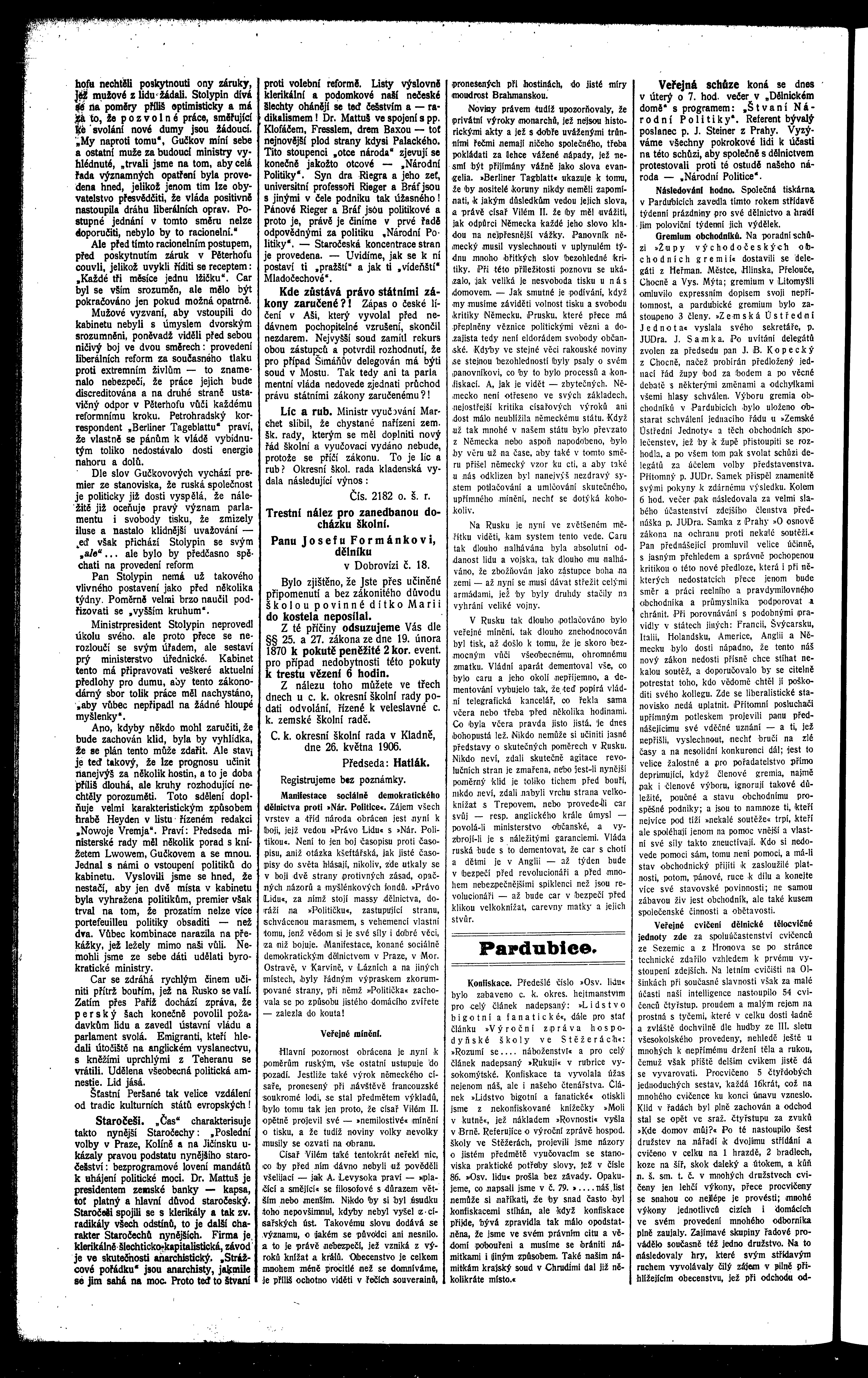 * Datum vydání výtisku: 14.8.1906 Číslo výtisku: 88 Poznámky k výtisku: ranní vydání