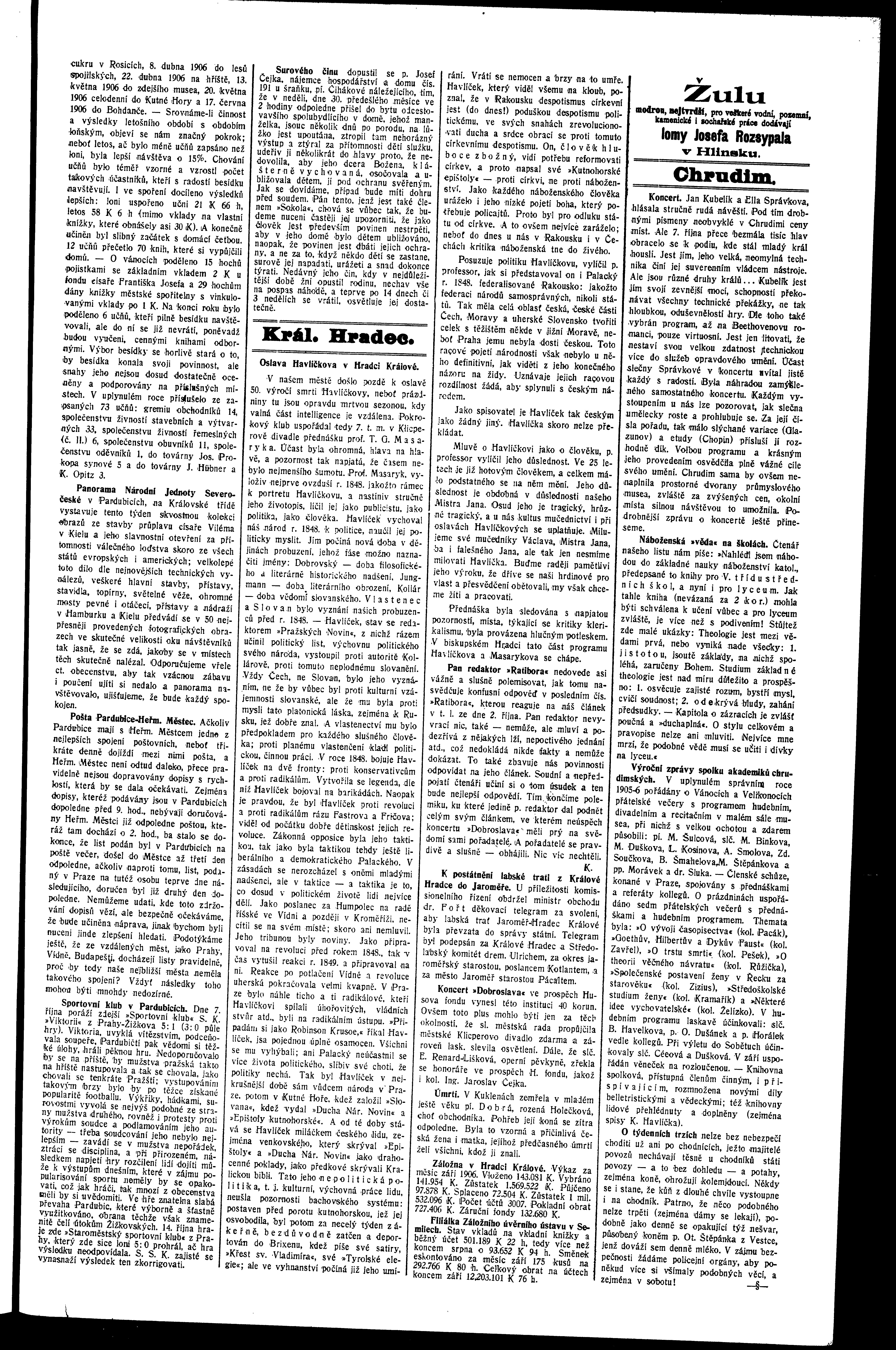 * Datum vydání výtisku: 9.10.1906 Číslo výtisku: 109 Poznámky k výtisku: ranní vydání