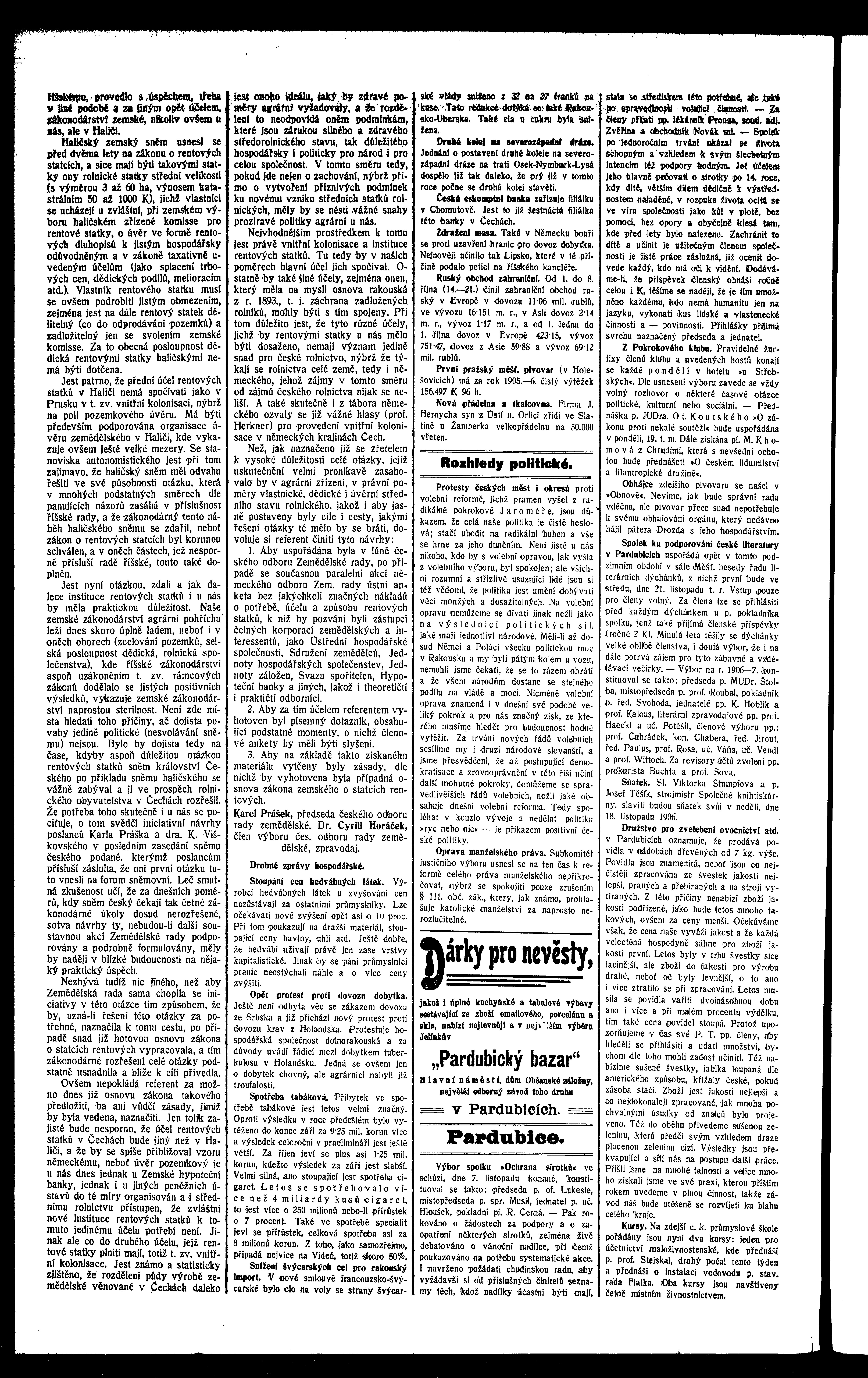 * Datum vydání výtisku: 10.11.1906 Číslo výtisku: 122 Poznámky k výtisku: ranní vydání