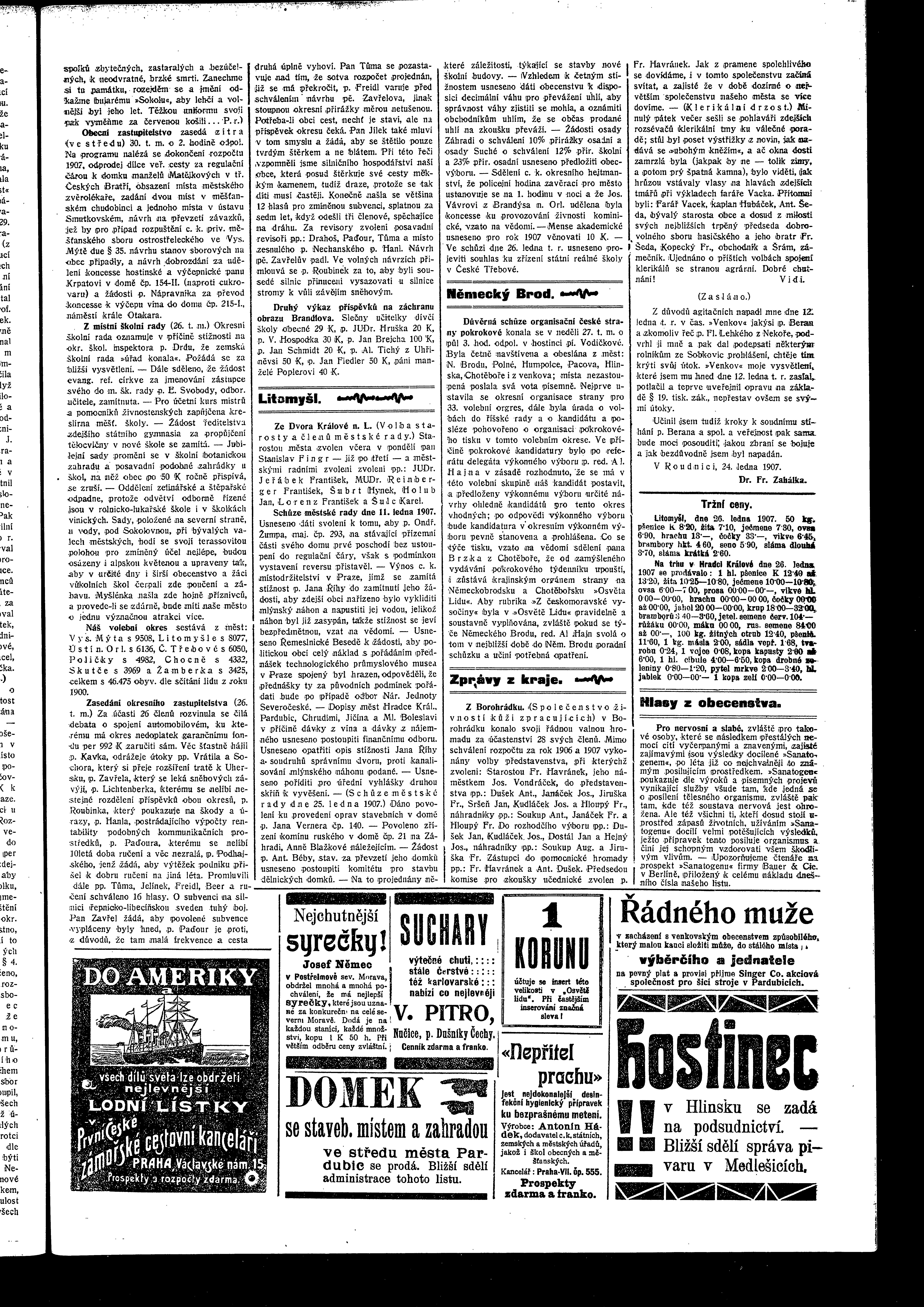 * Datum vydání výtisku: 29.1.1907 Číslo výtisku: 12 Poznámky k výtisku: ranní vydání