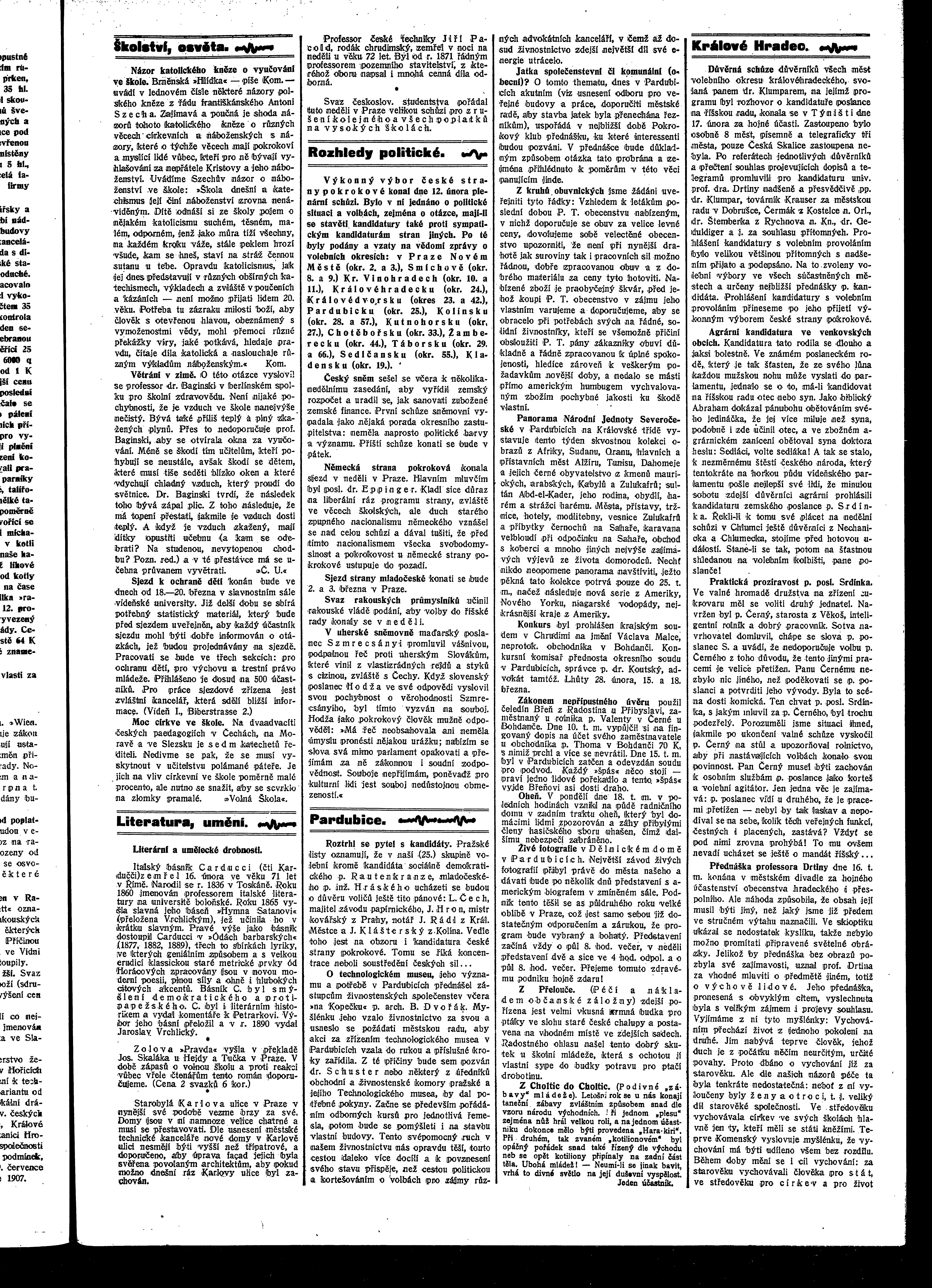 * Datum vydání výtisku: 19.2.1907 Číslo výtisku: 20 Poznámky k výtisku: ranní vydání