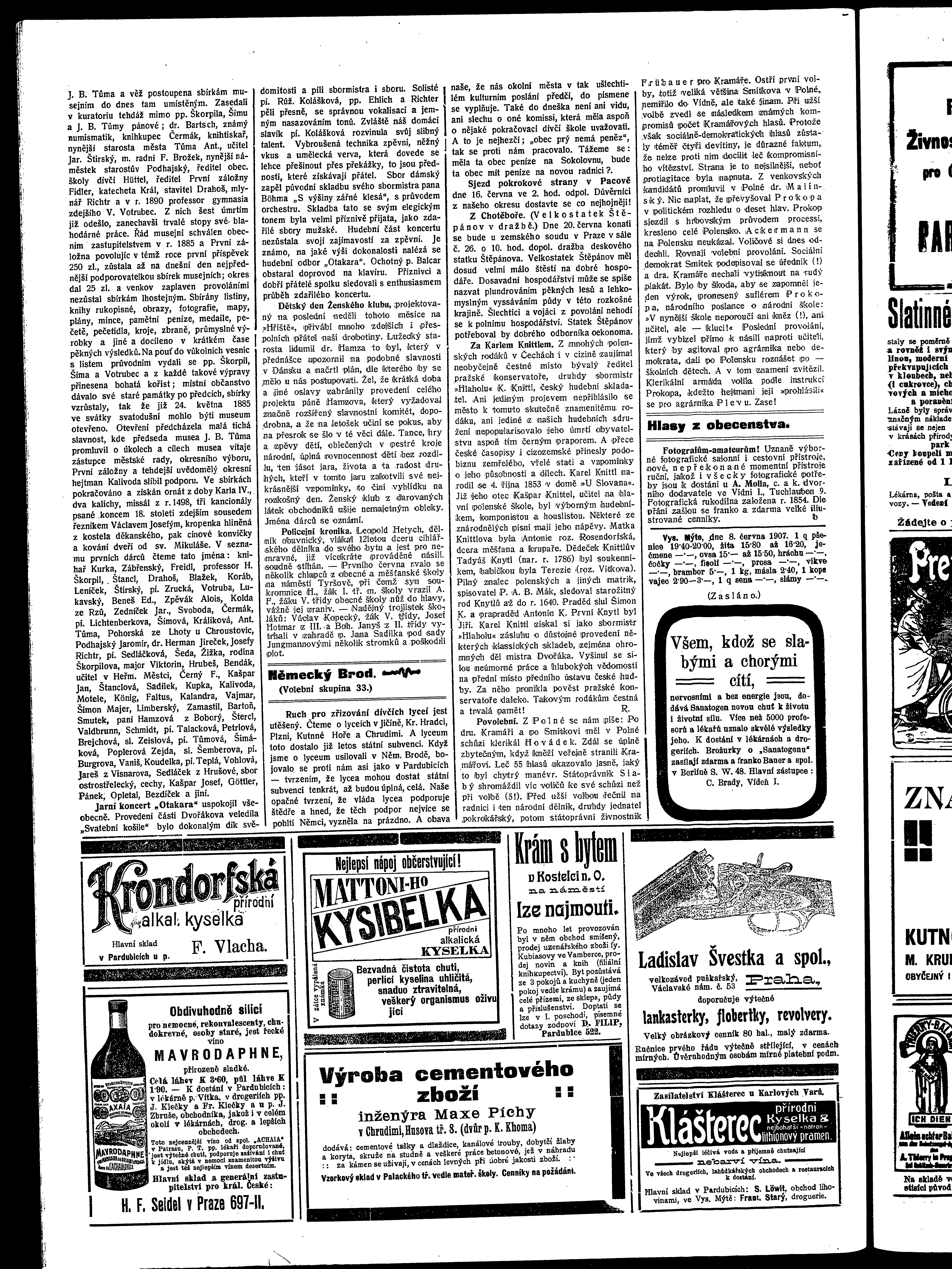 * Datum vydání výtisku: 8.6.1907 Číslo výtisku: 62 Poznámky k výtisku: ranní vydání