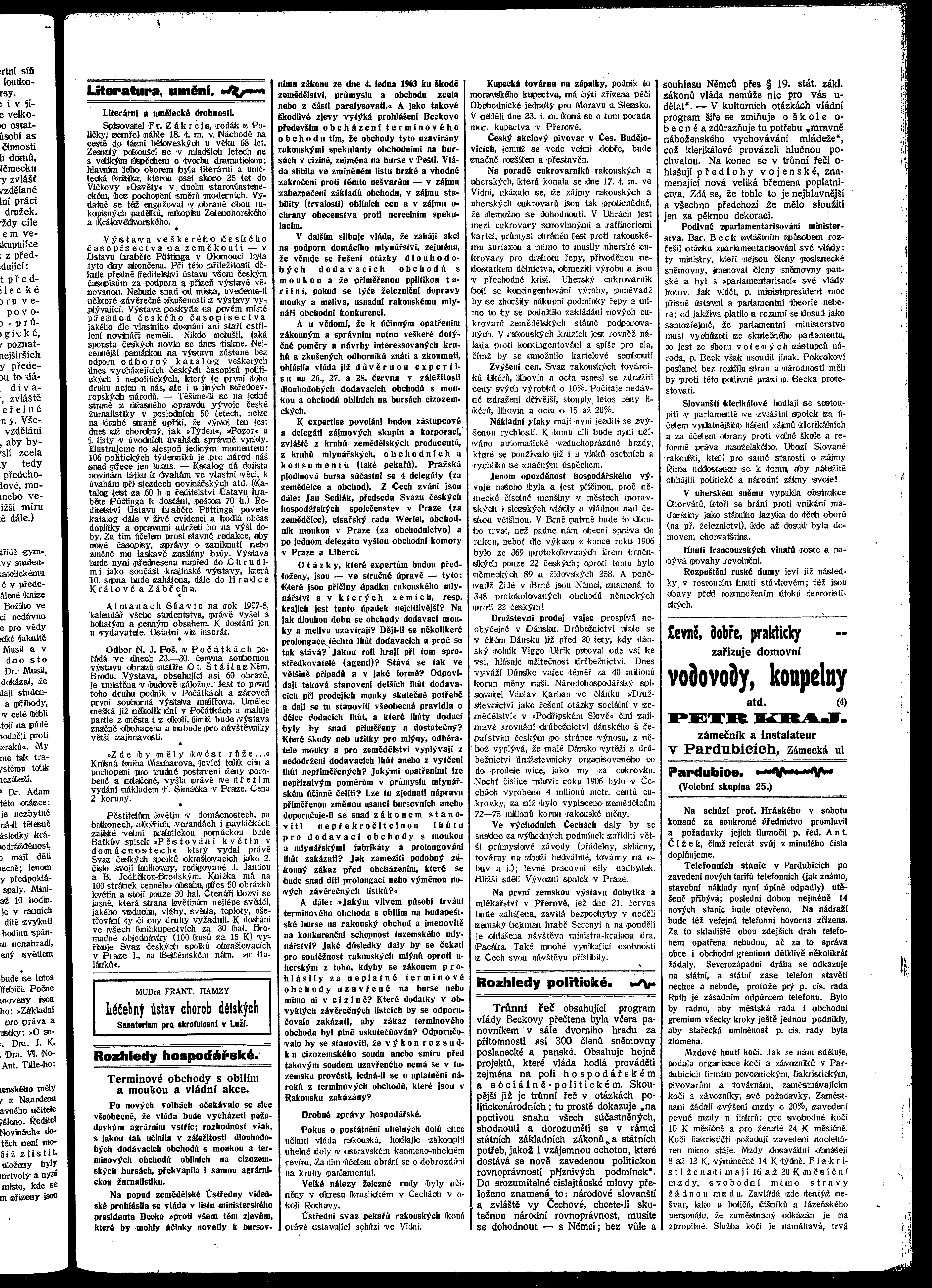 * Datum vydání výtisku: 20.6.1907 Číslo výtisku: 67 Poznámky k výtisku: ranní vydání