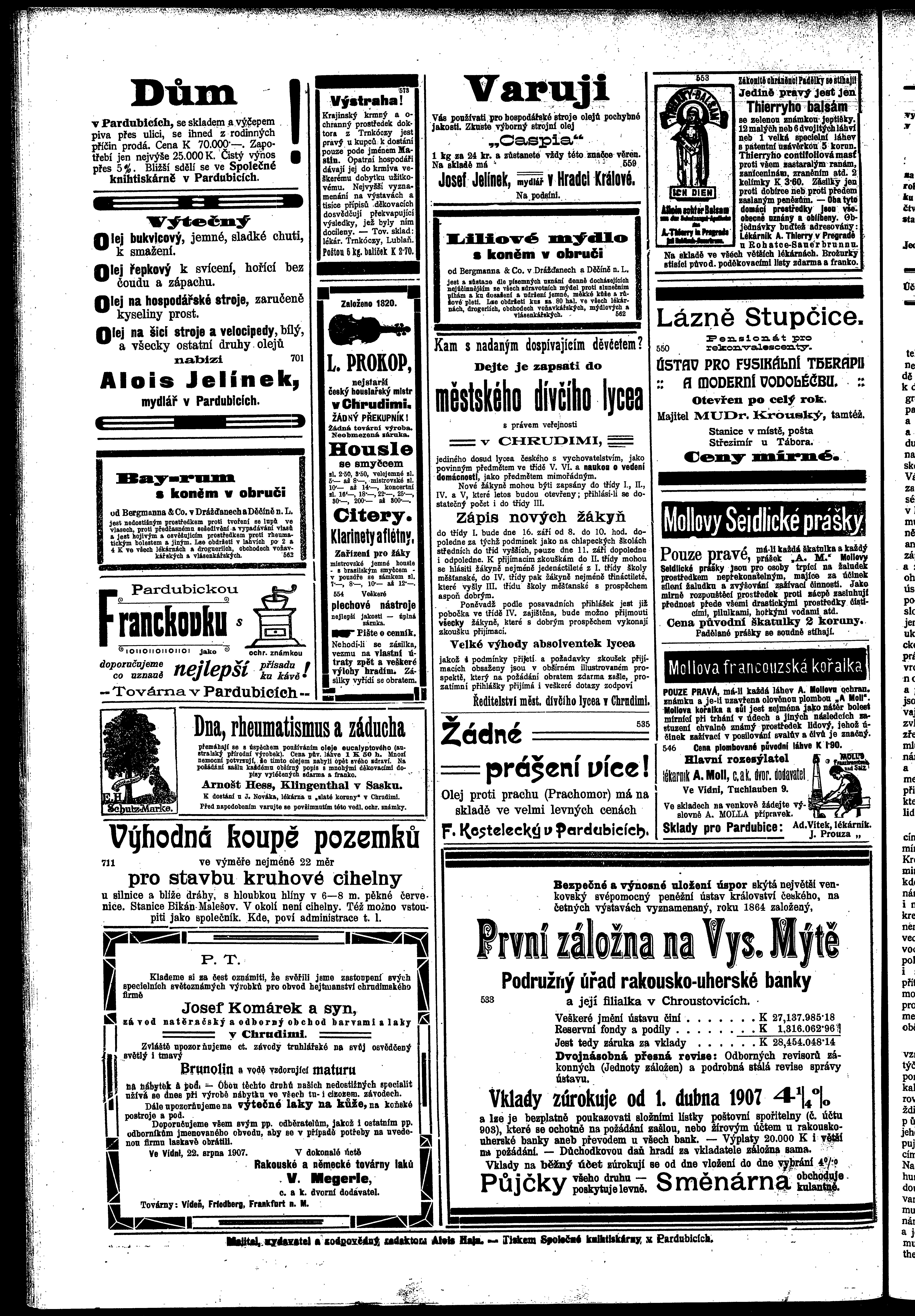 * Datum vydání výtisku: 7.9.1907 Číslo výtisku: 98 Poznámky k výtisku: ranní vydání