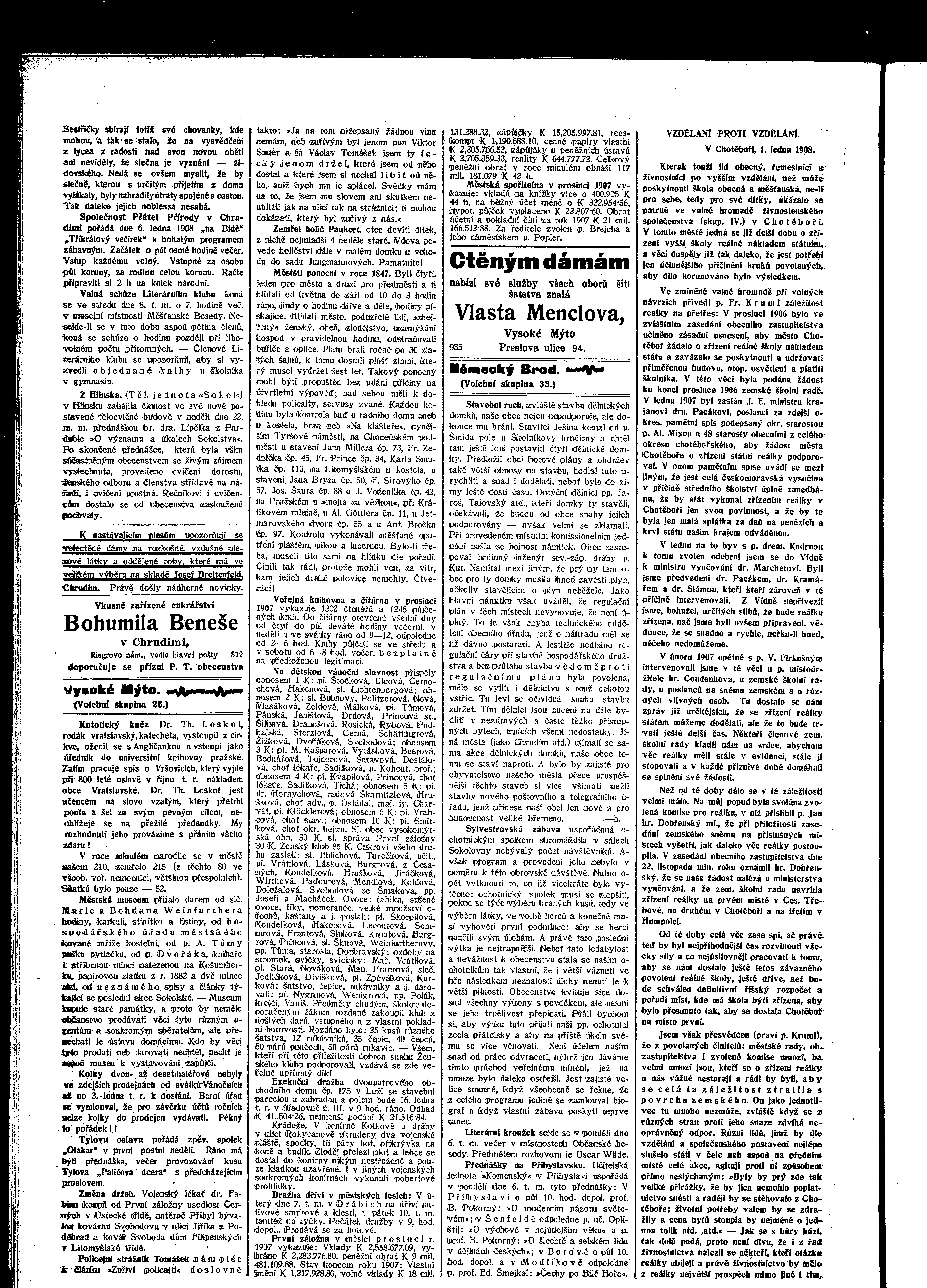 * Datum vydání výtisku: 4.1.1908 Číslo výtisku: 1 Poznámky k výtisku: ranní vydání