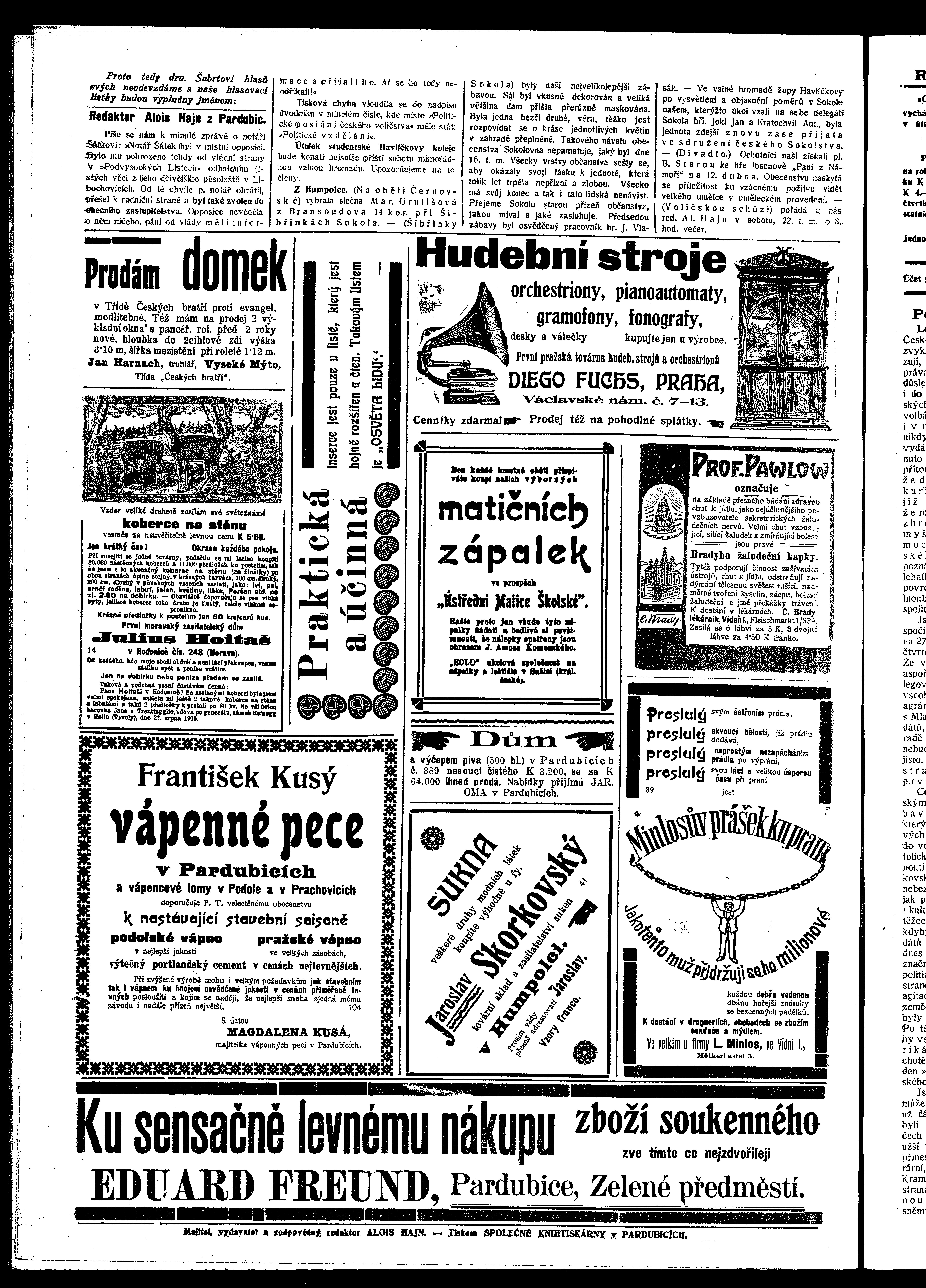 * Datum vydání výtisku: 20.2.1908 Číslo výtisku: 21 Poznámky k výtisku: ranní vydání