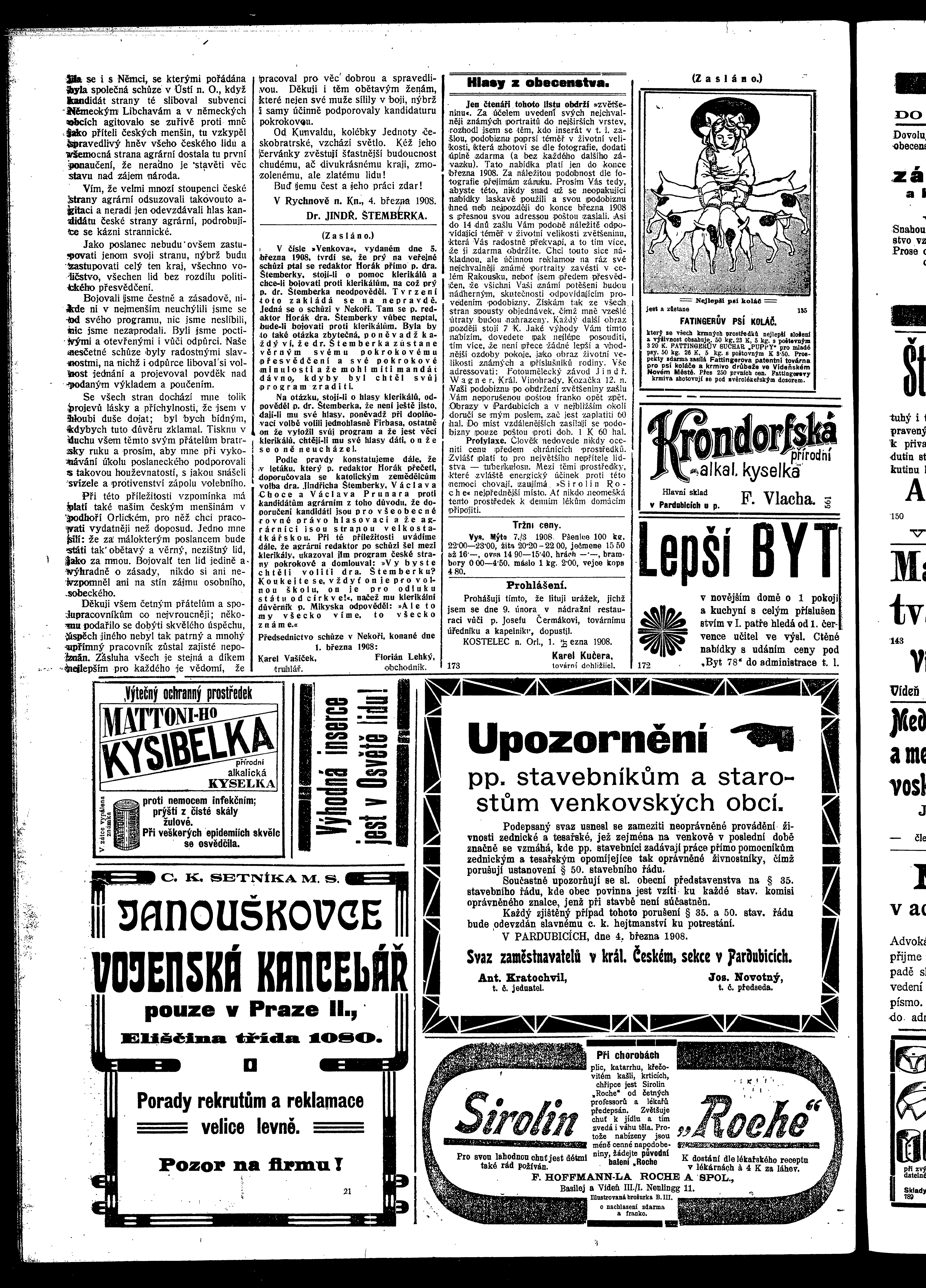 * Datum vydání výtisku: 7.3.1908 Číslo výtisku: 27 Poznámky k výtisku: ranní vydání