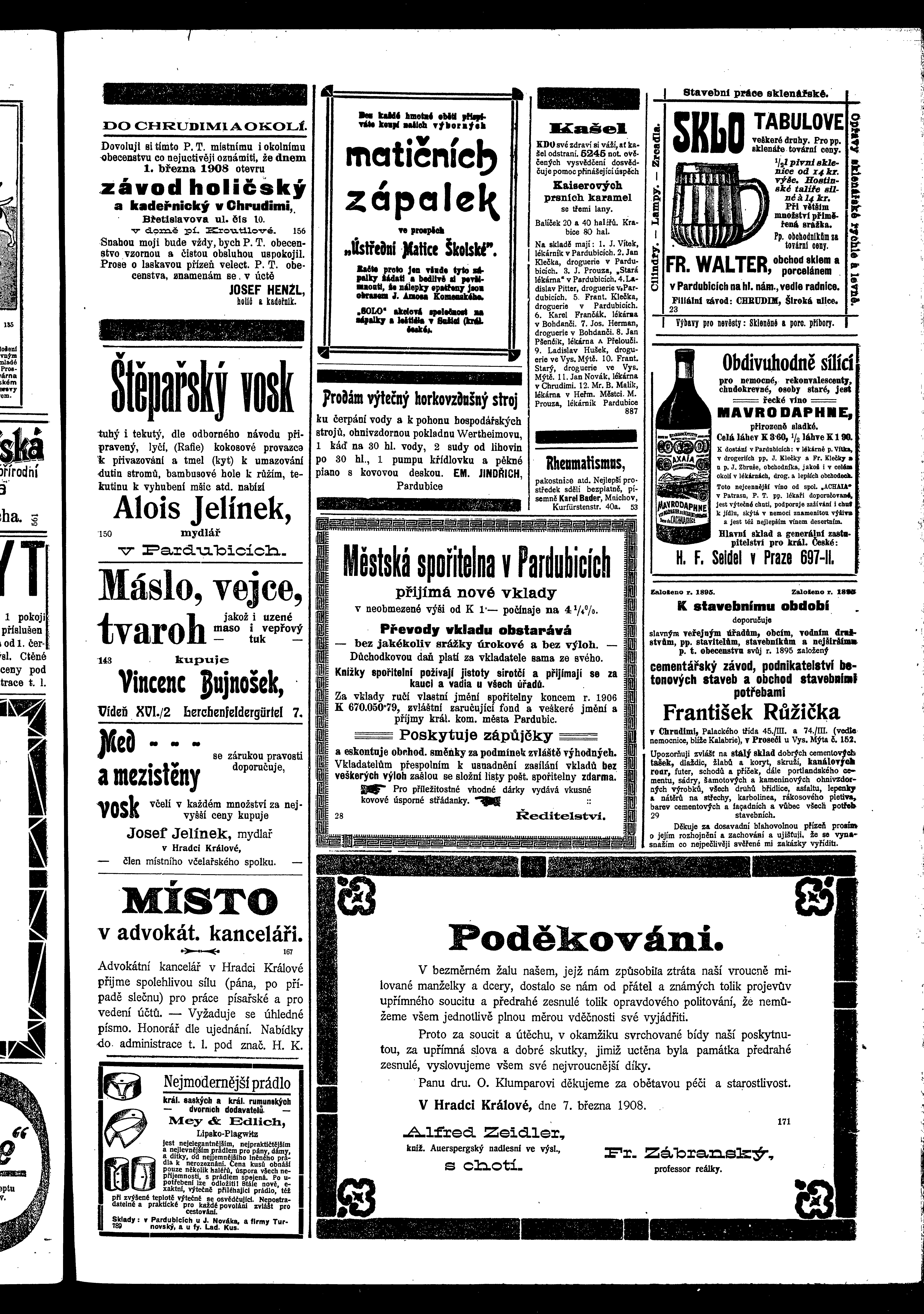 * Datum vydání výtisku: 7.3.1908 Číslo výtisku: 27 Poznámky k výtisku: ranní vydání