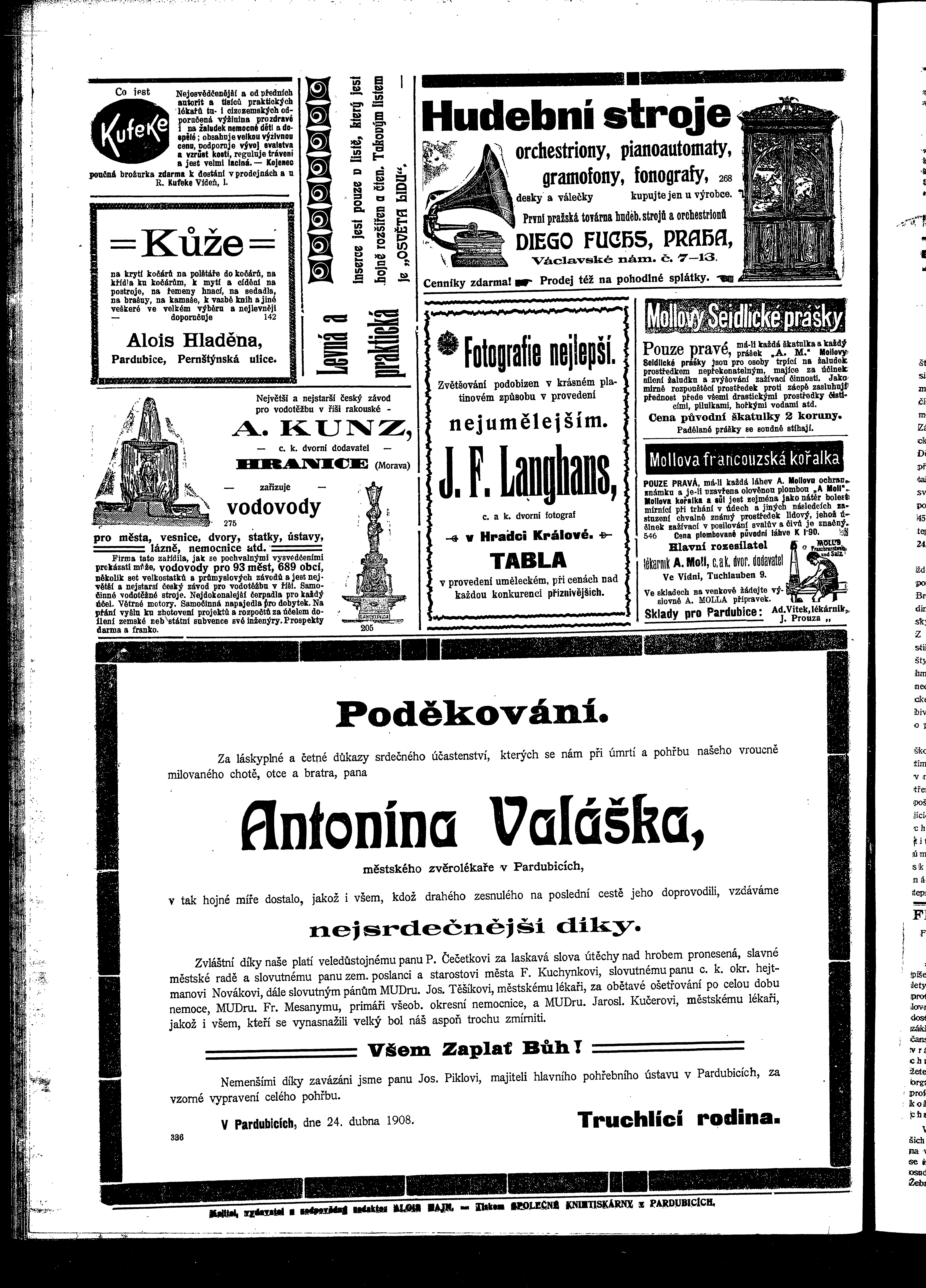 * Datum vydání výtisku: 25.4.1908 Číslo výtisku: 46 Poznámky k výtisku: ranní vydání