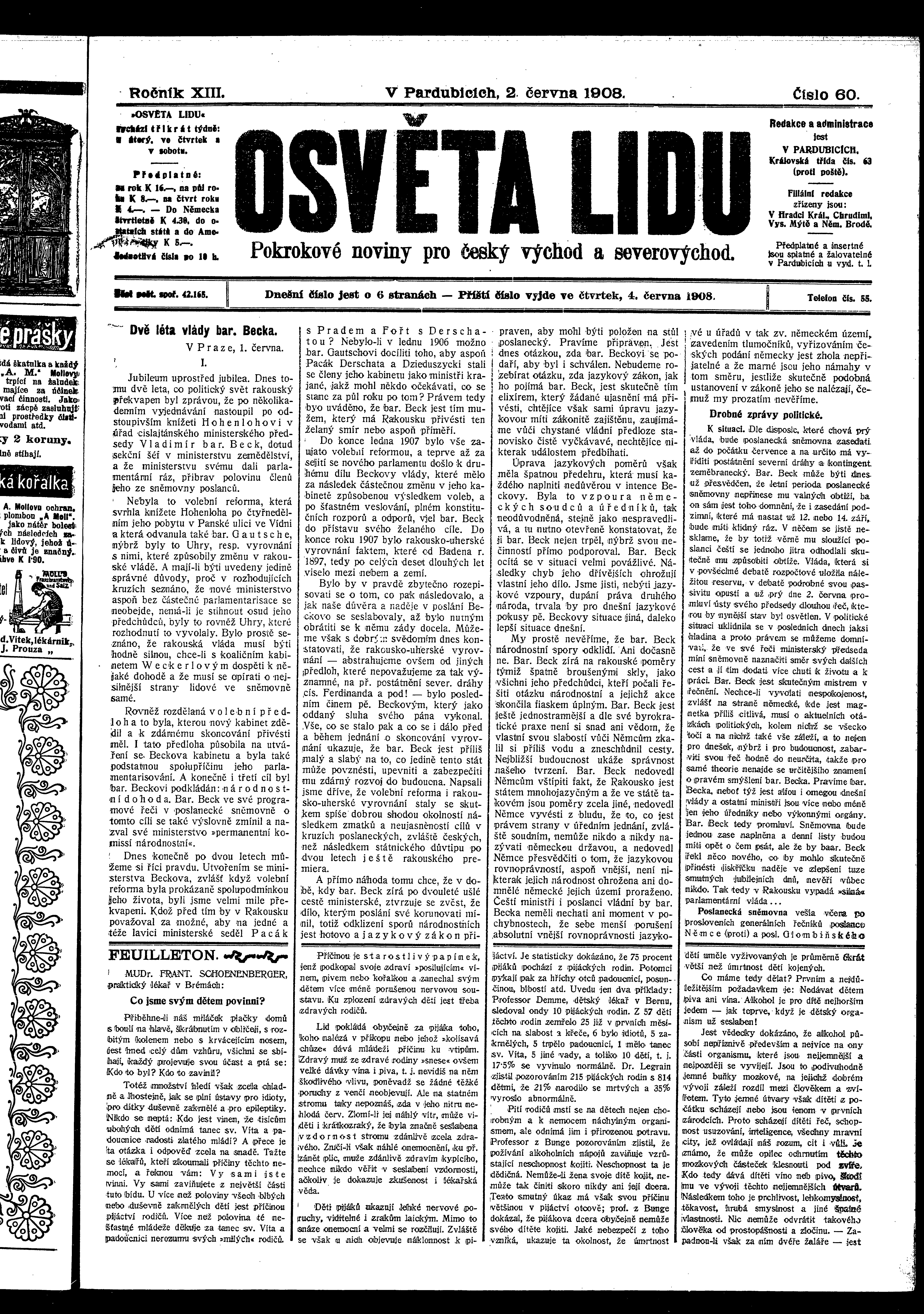 * Datum vydání výtisku: 2.6.1908 Číslo výtisku: 60 Poznámky k výtisku: ranní vydání
